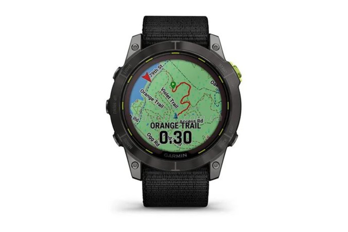 Отримайте підзарядку від сонячної енергії для надзвичайно довгого періоду роботи в режимі GPS, якого точно вистачить для будь-якого ультрамарафону. Крім того, годинник Enduro 2 пропонує високу точність позиціювання у заощадливому режимі та вбудовану картографію для легкого орієнтування на будь-якій місцевості.