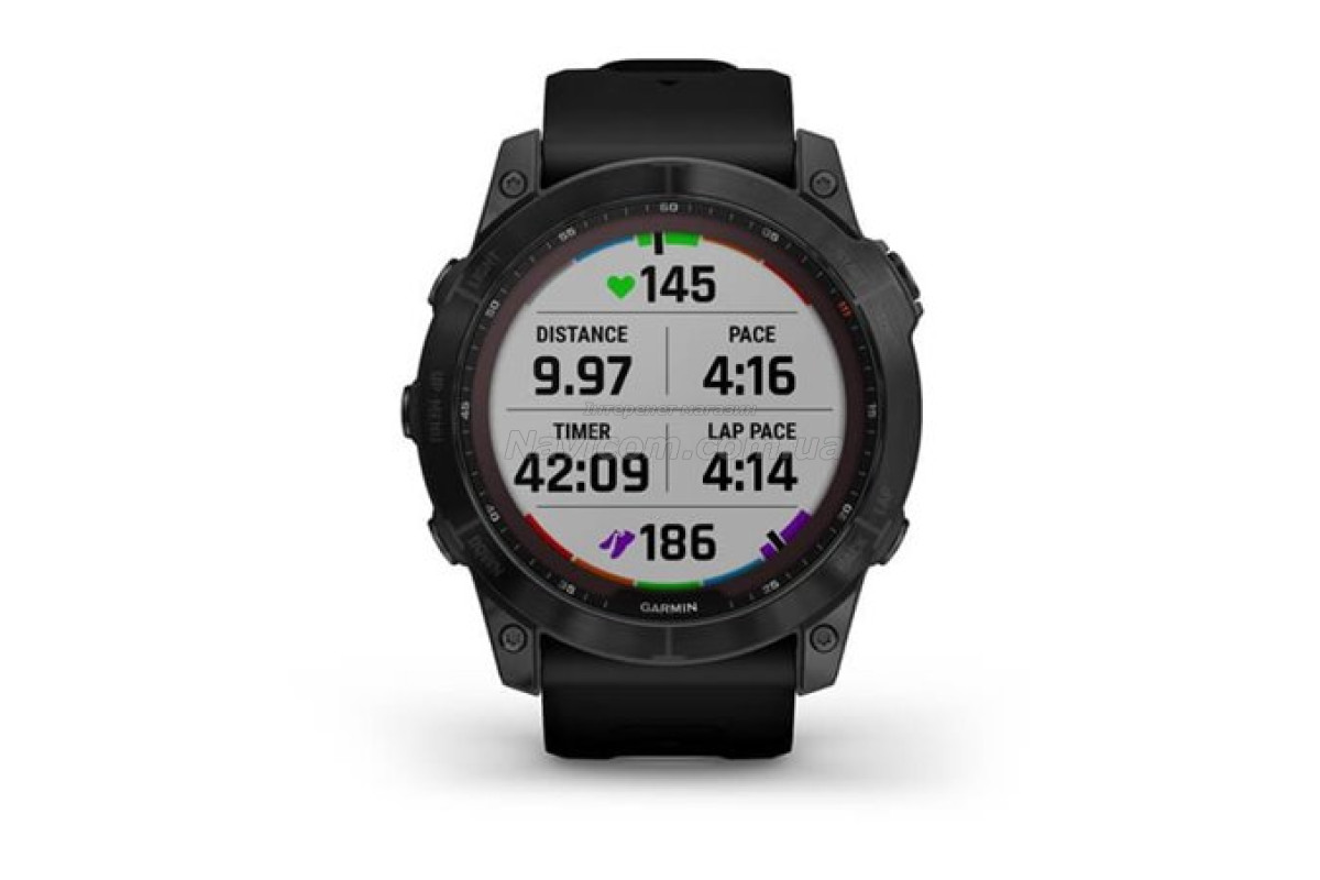 Смарт-годинник Garmin fenix 7X Sapphire Solar чорний титановий DLC з чорним ремінцем