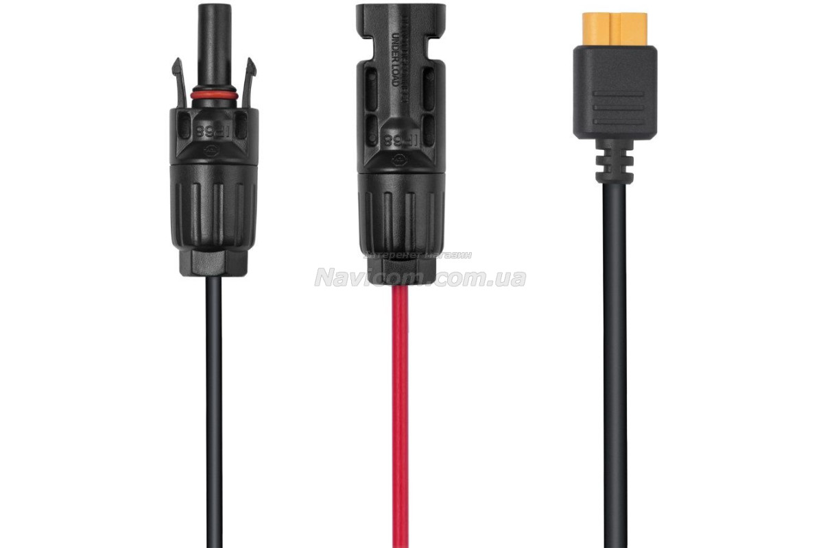 Кабель (MC4 - XT60) використовується для підзарядки EcoFlow. З його допомогою можна підключити сонячну панель до зарядної станції використовуючи стандартний вхід MC4. Довжина кабелю 3.5 метрів.