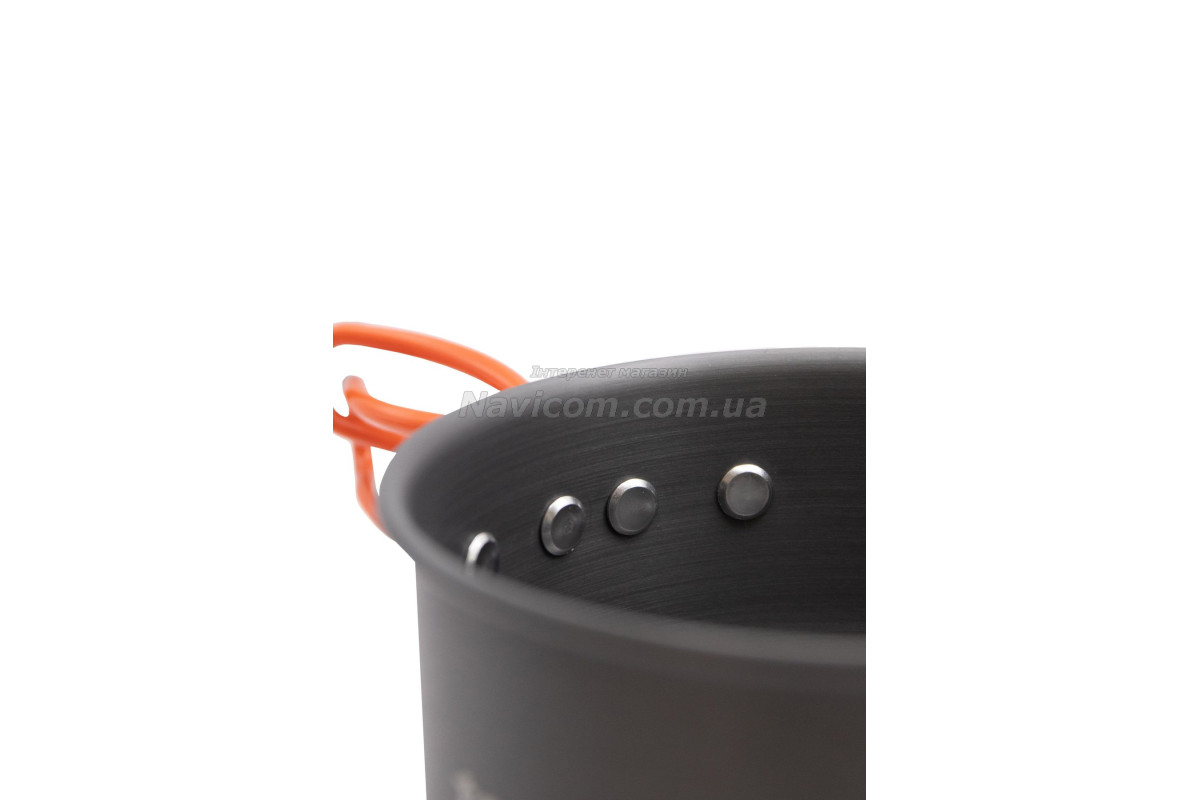 Каструля-кружка Tramp з анодованим покриттям на 0,75л та кришкою-сковорідкою об'ємом 0,5 літра – це незамінний набір посуду для одного мандрівника, ідеальний для використання на природі. Виготовлений з високоякісного анодованого алюмінію, цей набір забезпечує ефективну передачу тепла, швидке приготування їжі та надійність. Завдяки компактним розмірам та малій вазі, набір легко вміщується у рюкзак, що робить його ідеальним вибором для хайкінгу, трекінгу, полювання, риболовлі чи байкпакінгу. До набору входять каструля, яка може вмістити газовий балон на 230 грамів, газовий пальник, кришку-сковорідку, сітчастий чохол та губка для миття посуду.