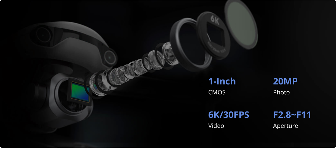 Виняткова якість зображення. Завдяки новому 20-мегапіксельному 1-дюймовому CMOS-датчику зображення від Sony, камера EVO II Pro V3 підтримує відео до 6K з розширеним динамічним діапазоном, сильнішим шумопоглинанням і вищою частотою кадрів. Діафрагма f/2,8–f/11, що регулюється, і максимальне значення ISO 44 000 дають фотографам розширений творчий контроль.