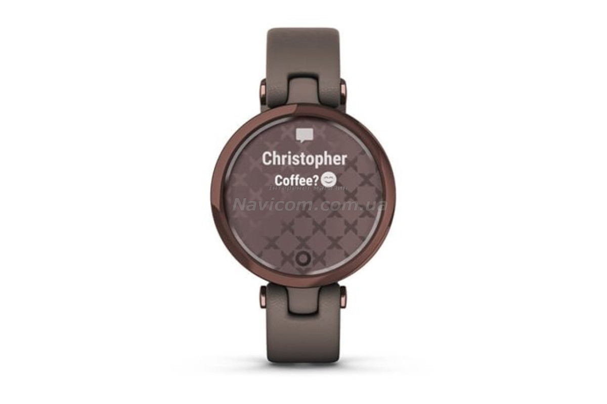 Модний смарт-годинник Garmin Lily унікальний у своєму роді. Надзвичайно тендітний корпус діагоналлю лише 34 мм оснащений стильним візерунковим екраном. Торкніться його або просто поверніть зап’ястя, щоб активувати яскравий сенсорний дисплей з даними.