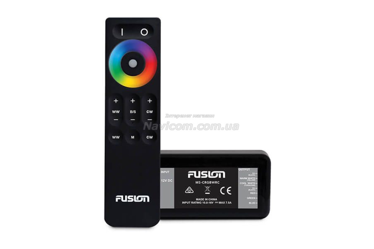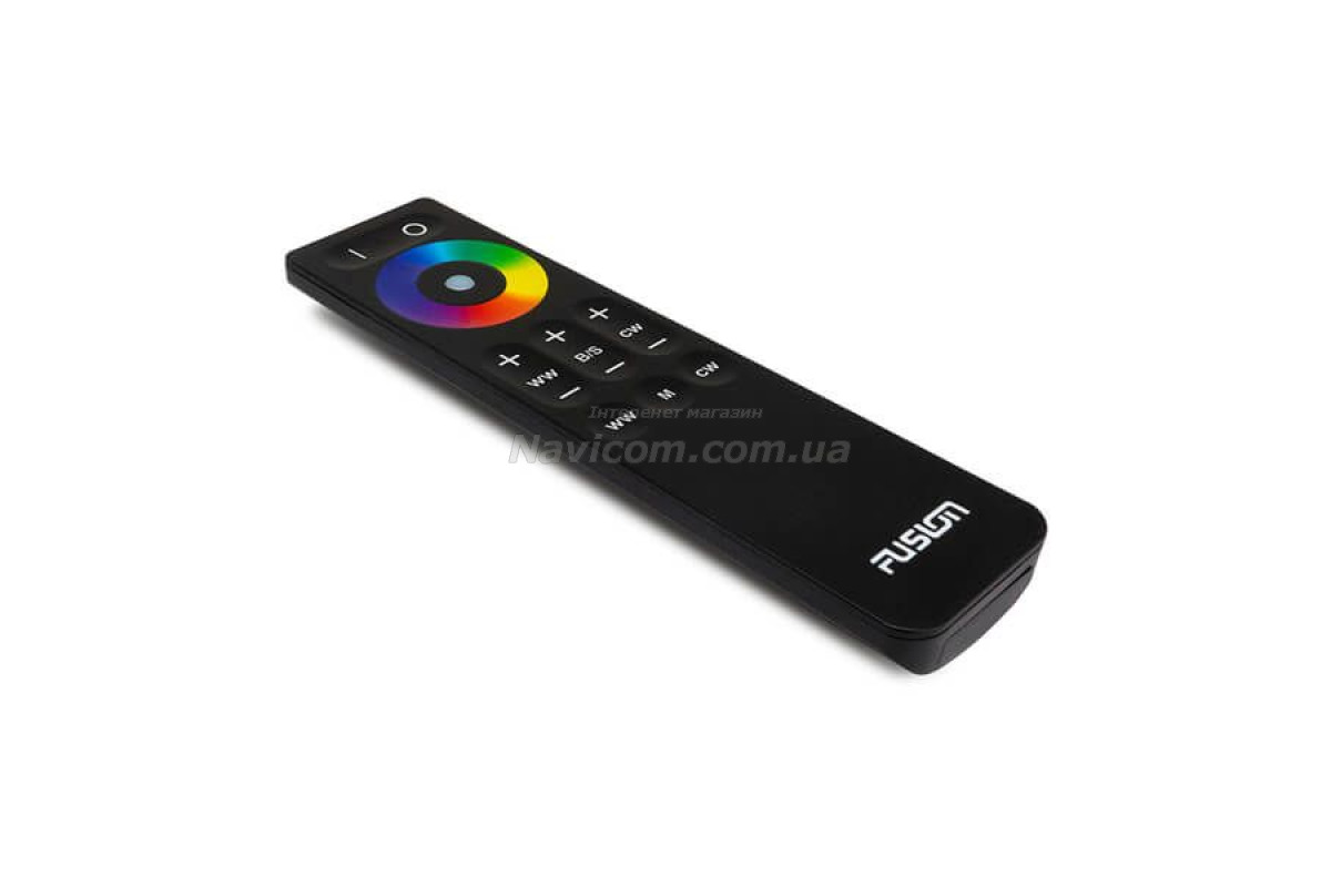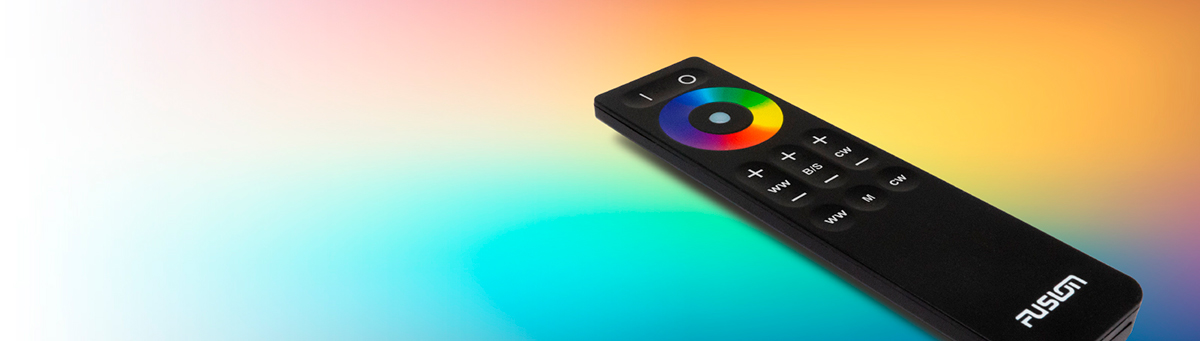 Повністю контролюйте параметри світлодіодного освітлення своїх динаміків та сабвуферів Fusion® CRGBW за допомогою цього модуля з пультом дистанційного керування.
