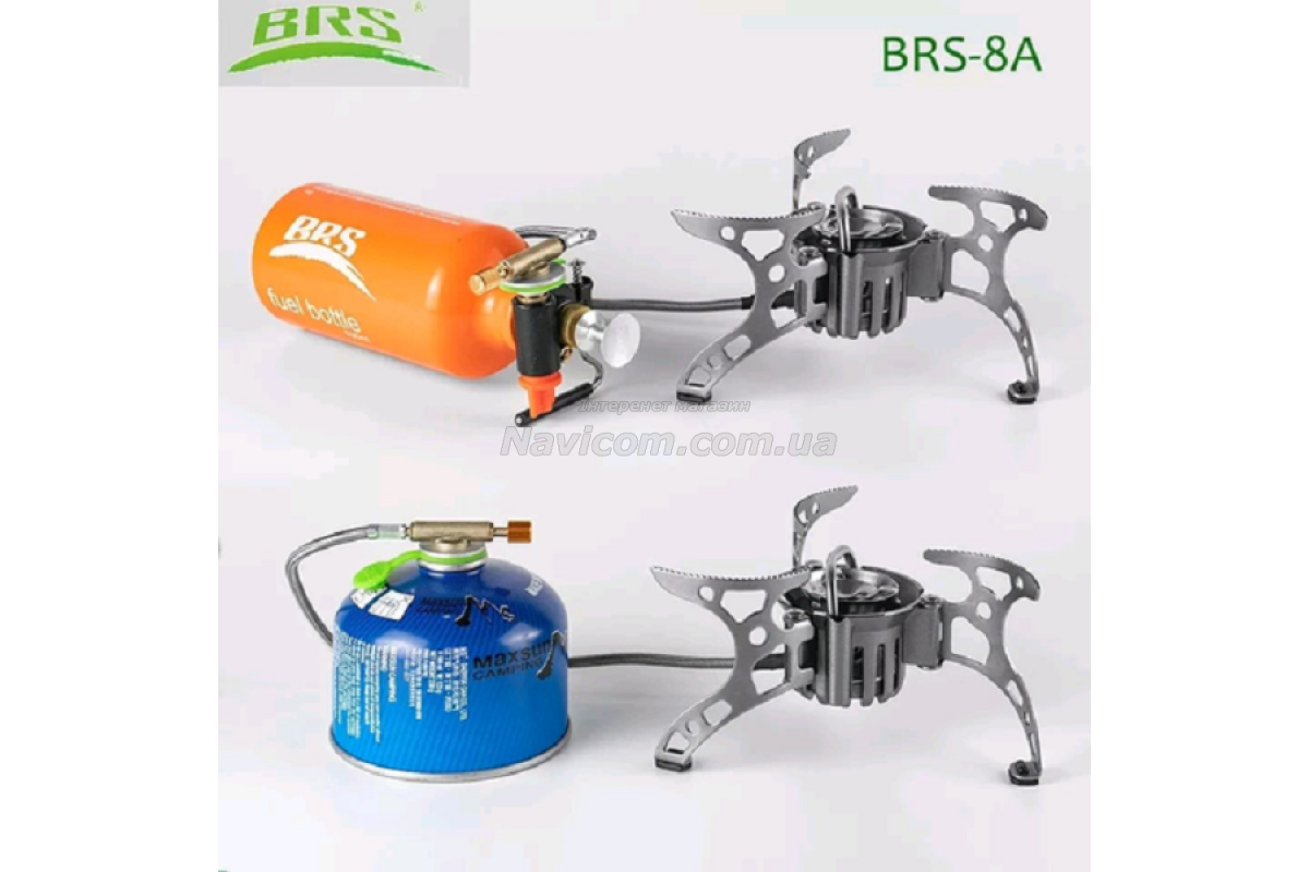 Пальник BRS-8A — універсальний помічник у приготуванні їжі та гарячих напоїв під час пікніка, кемпінгу та екстремальних подорожей вдалині від благ цивілізації. Модель відноситься до пальників мультипаливного типу, оскільки може працювати від різних видів палива, включаючи балонний газ, бензин (рекомендовано - 95 і вище; допустимо - 92) і дизель. Потужність пальника становить 4500 Вт, що дозволяє довести до кипіння 1 літр води протягом 3-х хвилин. Витрата палива дорівнює близько 208 г/год.