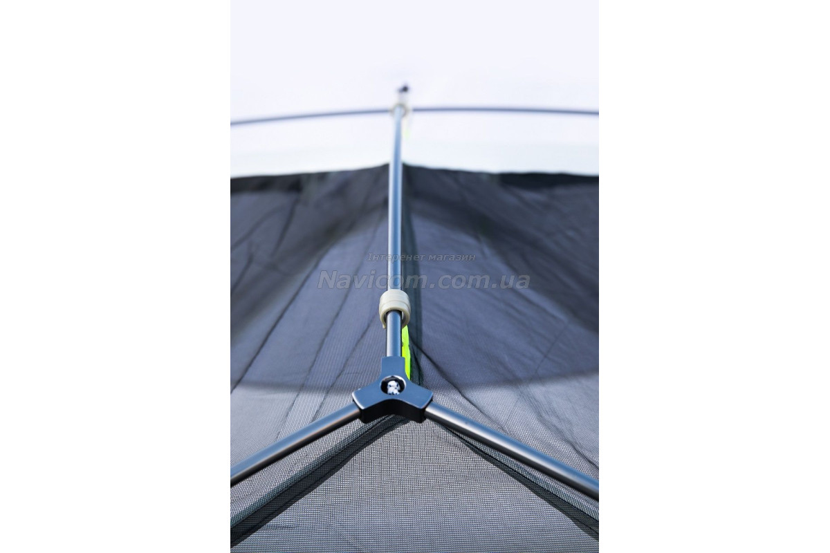 Вільностояча хабова конструкція каркасу забезпечує дуже швидке, просте, інтуїтивно зрозуміле встановлення, більший, в порівнянні з наметами інших конструкцій, житловий об'єм спального відсіку та підвищену вітростійкість.