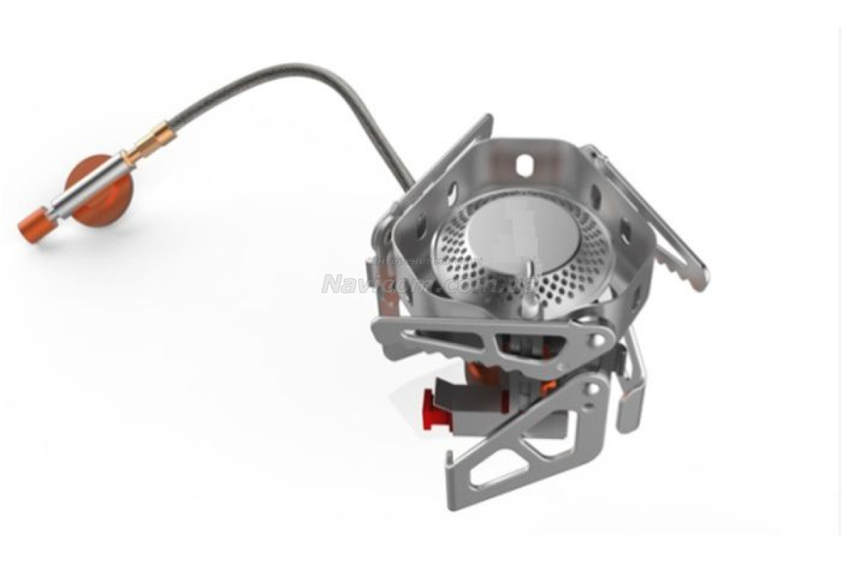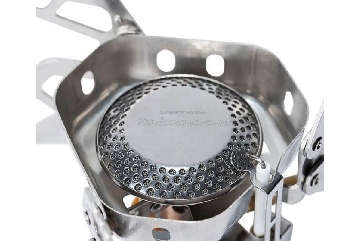 Конфорка додатково захищена вбудованим вітрозахисним екраном, який також збільшує ККД моделі та забезпечує дододатковий захист шланга від відзеркаленого полум'я.