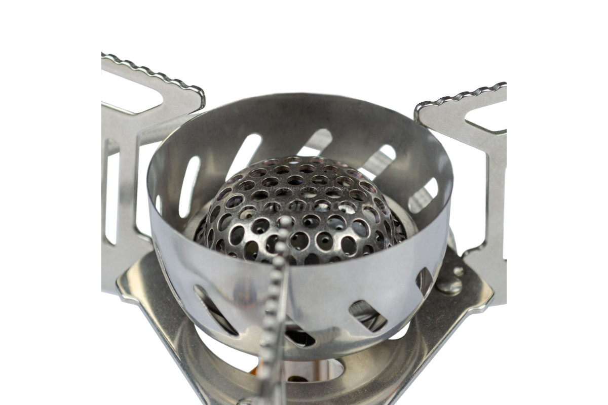 Завдяки двокомпонентній інноваційній системі вітрозахисту: вбудованому в корпус захисному екрану та сітці конфорки зі зносостійкого та жаростійкого сплаву, що зроблена за принципом стільників, і яка при нагріванні забезпечує дододаткову обтічність залишків вітрових поривів, що пройшли через перший ступінь захисту - вітрозахисного екрана, а також додаткову стабільність полум'я без втрати коефіцієнта корисної дії, досягається суттєва економія палива.