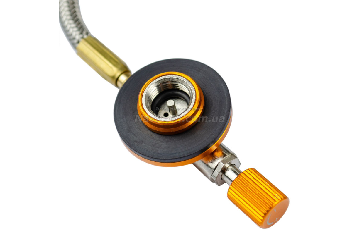 Довгий гнучкий шланг, що дозволяє, за необхідності, безпечно використовувати перевернутий газовий картридж, для більш повного використання.