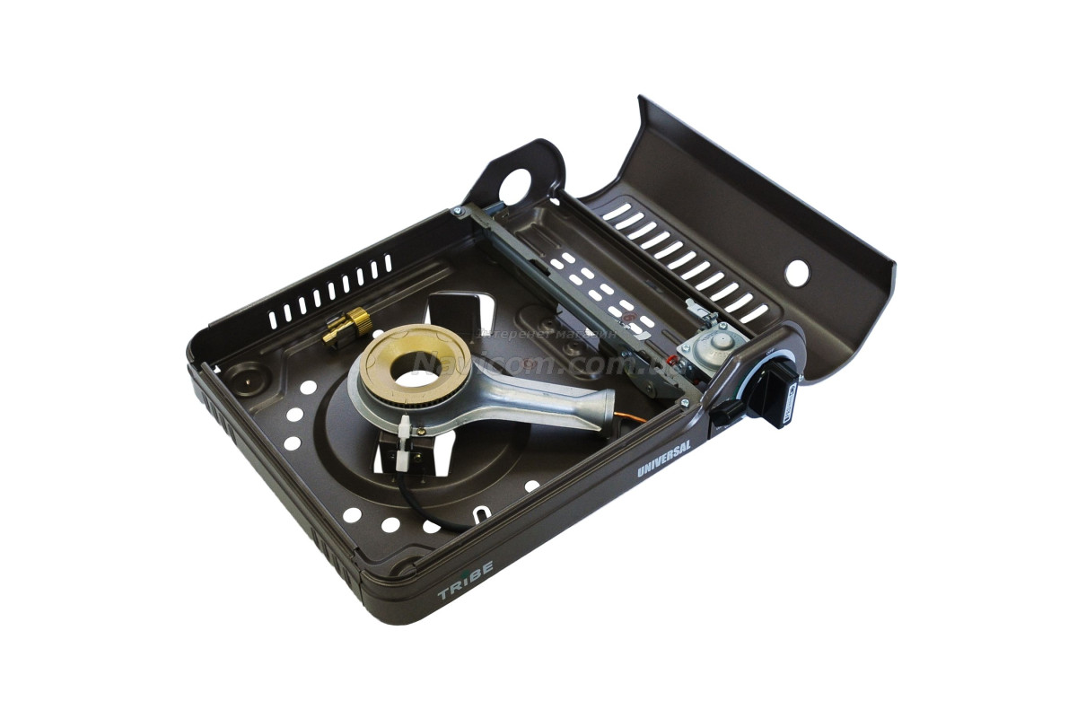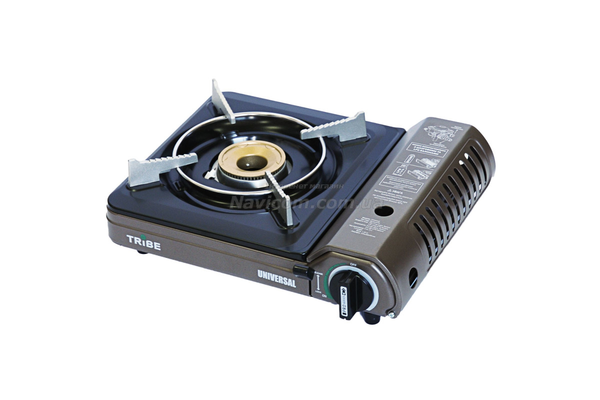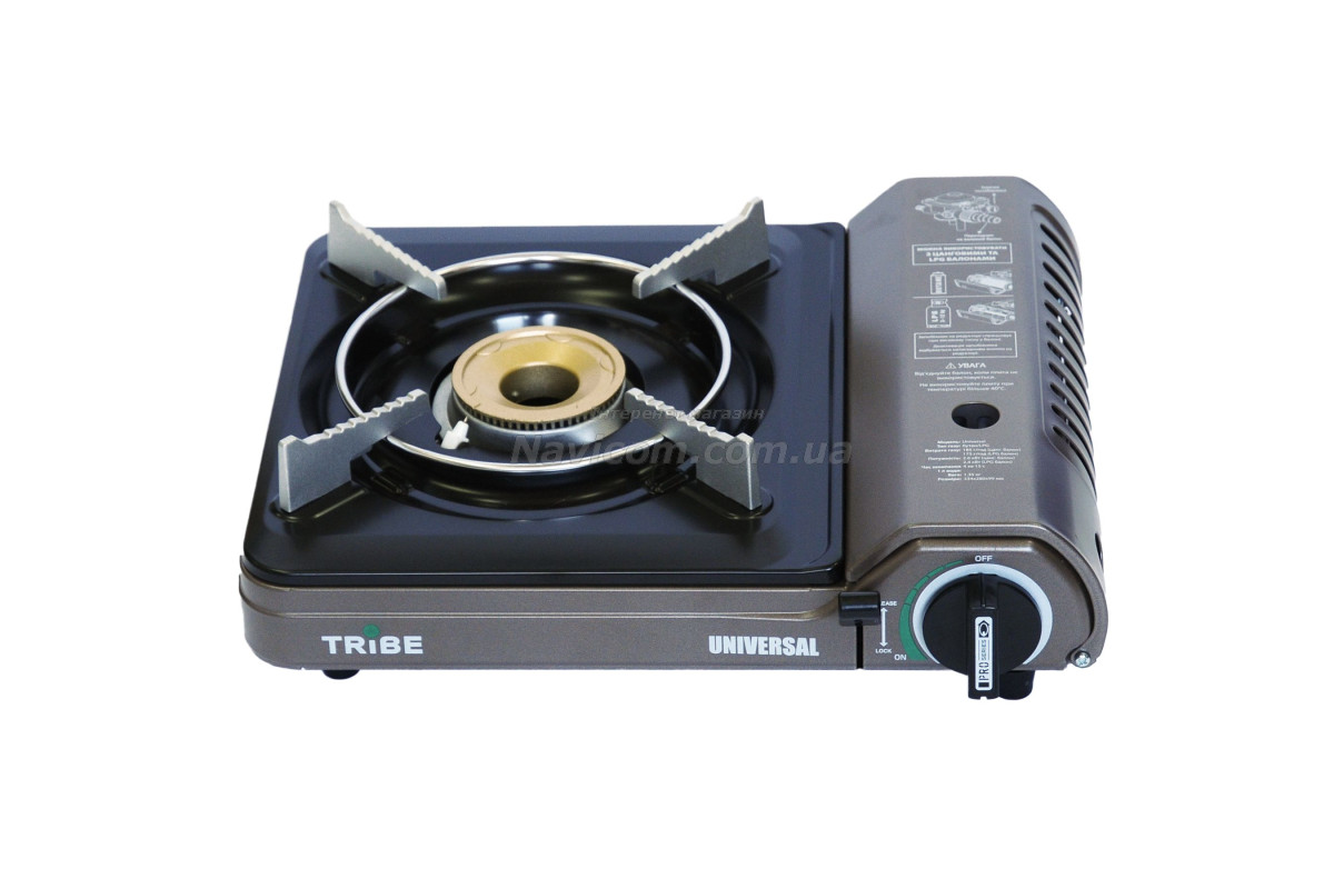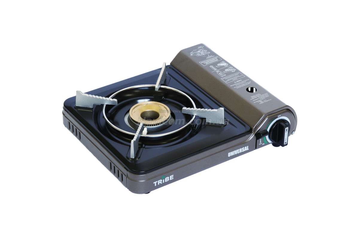 Плита газова портативна Tribe Universal з перехідником на великий балон це компактна туристична однокомфорочна газова плита, оснащена інфрачервоною керамічною конфоркою, яка забезпечує ефективне та економне приготування їжі з мінімальним використанням палива і майже без відкритого полум'я. Завдяки можливості роботи від двох типів газових джерел — стандартного цангового картриджа на 220 г (євростандарт) та великого побутового пропанового балона — ця плита є універсальним рішенням для кемпінгу, автотуризму, риболовлі, полювання та навіть для домашнього використання як резервний варіант приготування їжі під час відключень електроенергії. Вона поєднує сучасні технології, безпеку та зручність, роблячи процес приготування на відкритому повітрі максимально комфортним.
