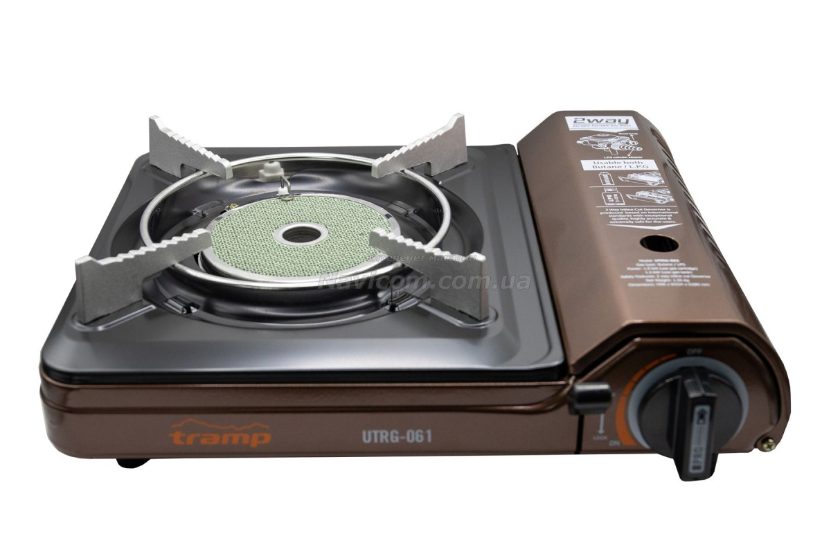 - Завдяки використанню технології вбудованої інфрачервоної керамічної конфорки – плита Tramp UTRG-059 економить до 30% палива у порівнянні з туристичними плитами традиційної конструкції.