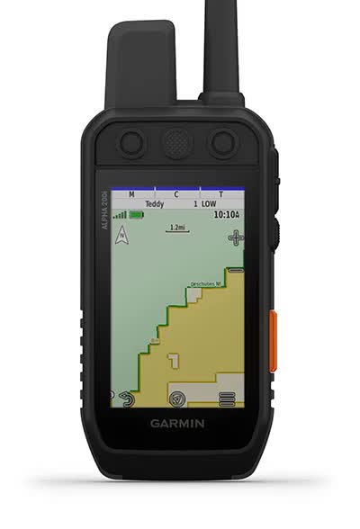 Відстежуйте та дресуйте своїх собак за допомогою системи стеження за собаками Alpha 200i з супутниковою технологією inReach®1, яскравим сенсорним дисплеєм 3.5” та інтуїтивно-зрозумілим дизайном з шістьма кнопками.