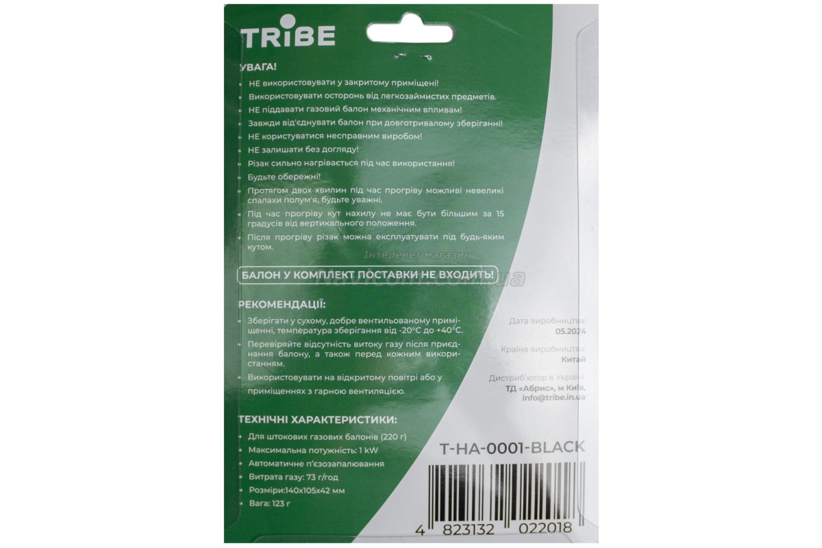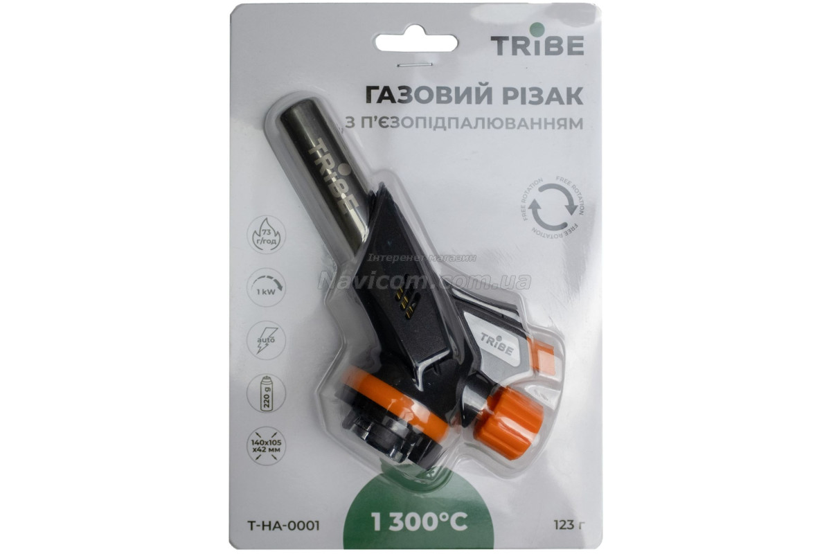 Різак газовий Tribe Spark з п'єзопідпалом T-HA-0001 зручно використовувати для розпалювання деревного вугілля для барбекю, приготування їжі, нескладного зварювання мідних труб та роботи з трубами ПВХ, відігрівання замерзлих труб. Різак забезпечений п’єзопідпалом, має точне регулювання полум’я.