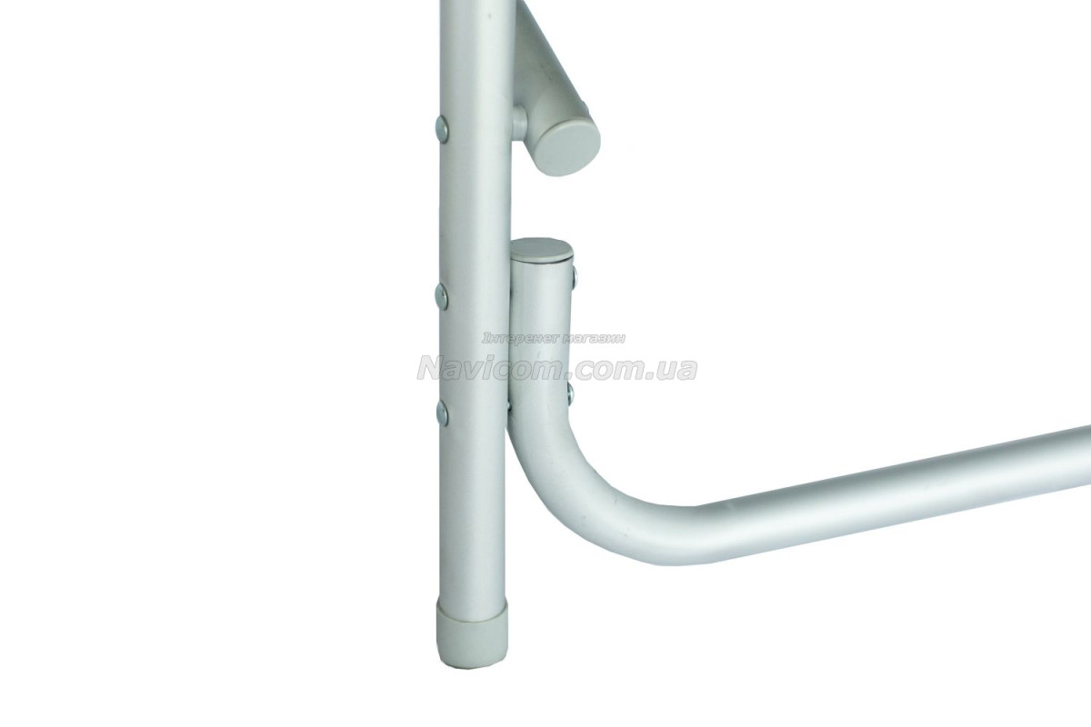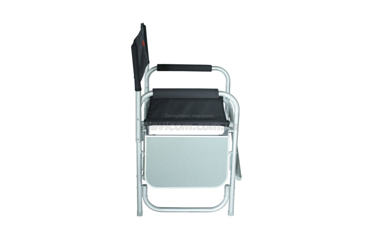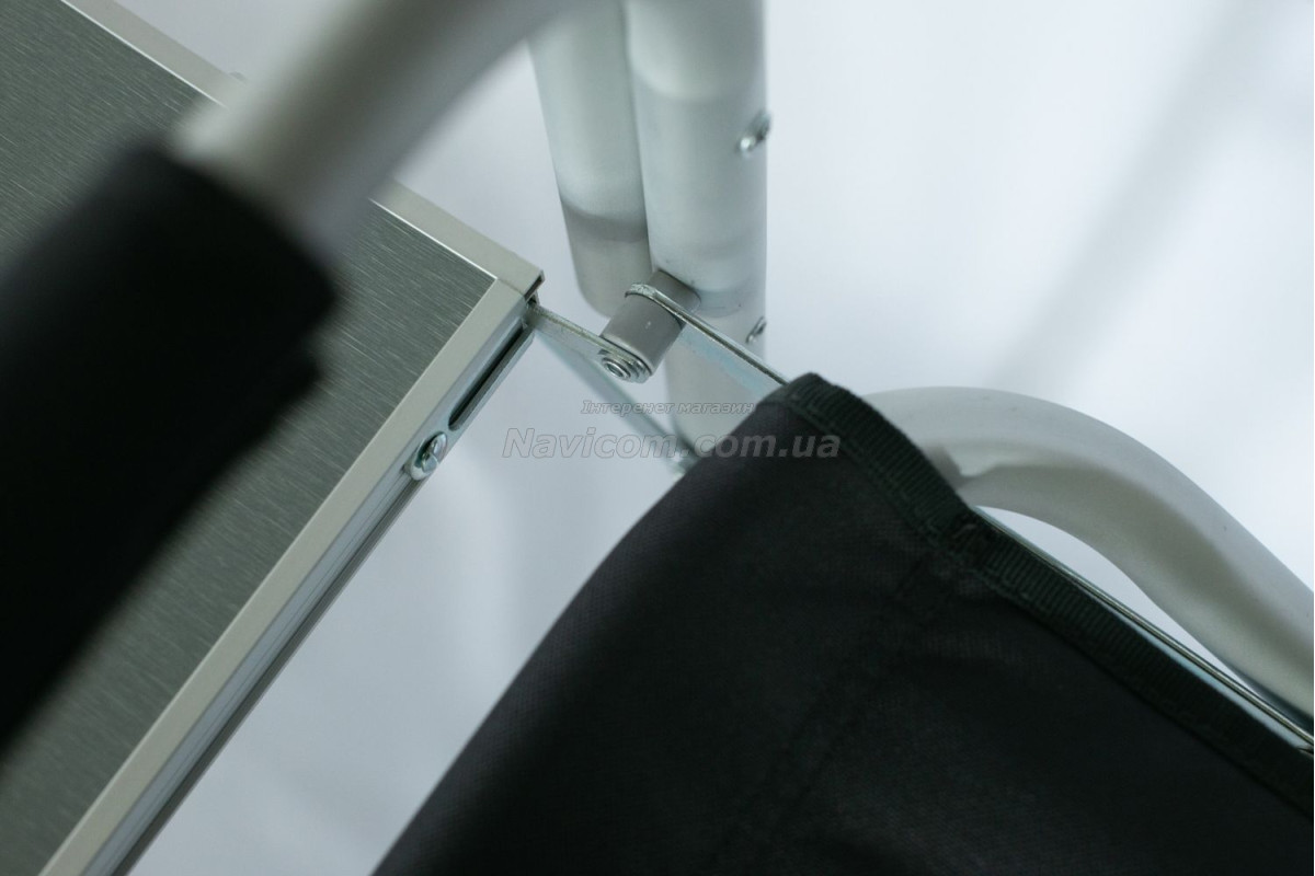 Стул оборудован откидывающимся сбоку подлокотника столиком.