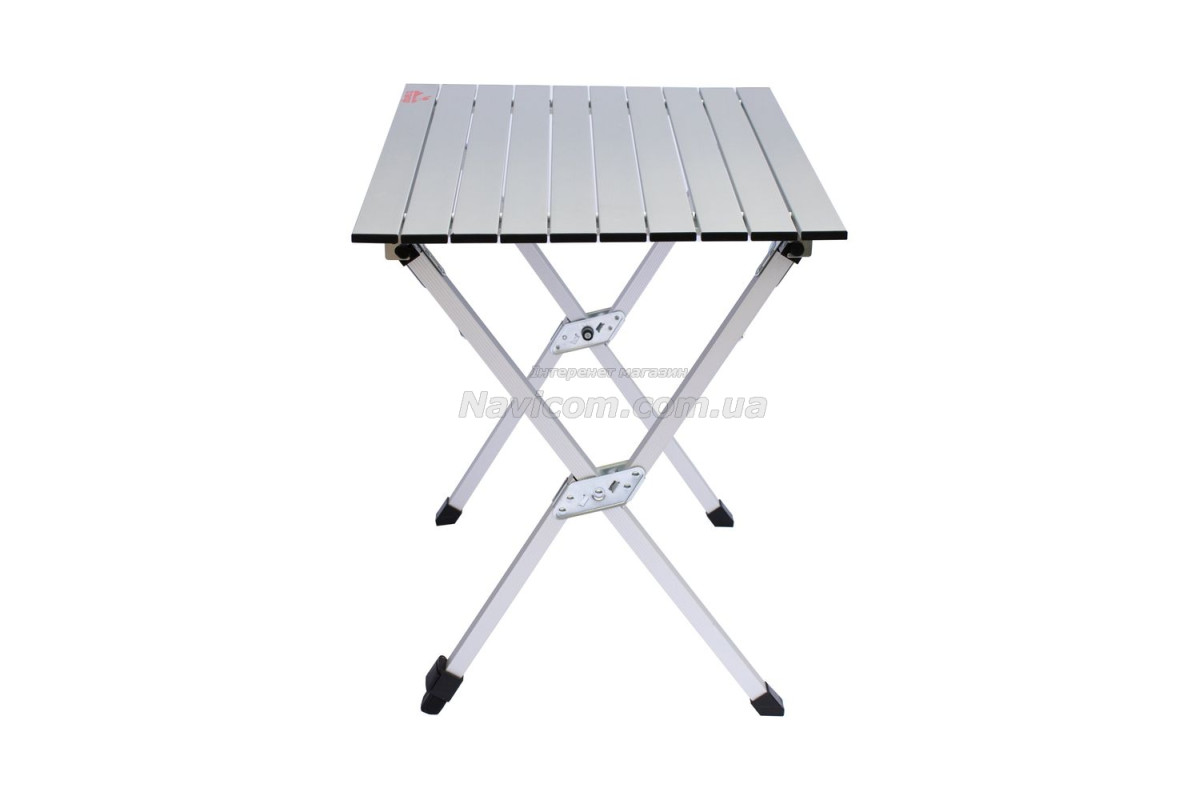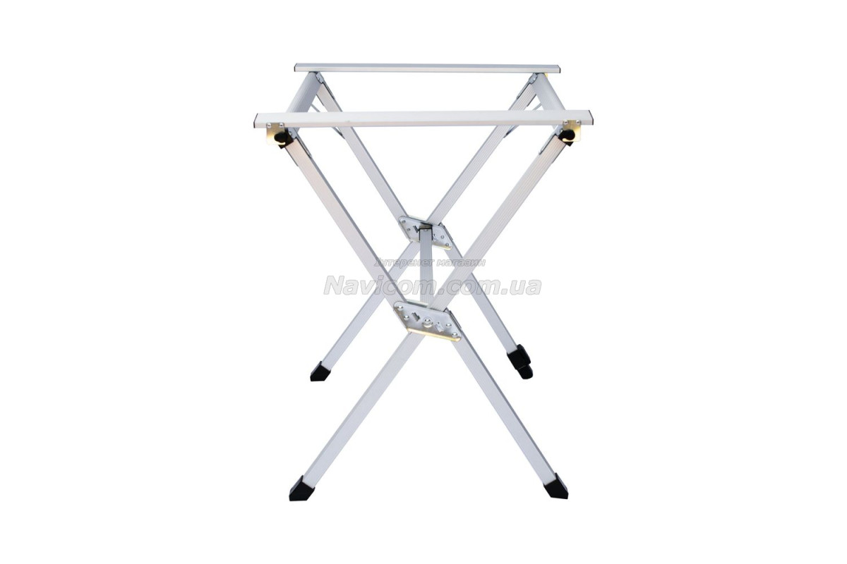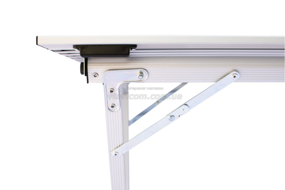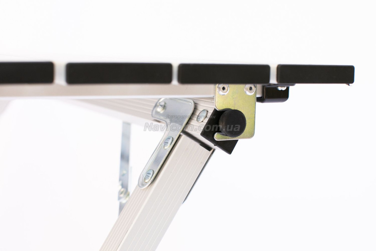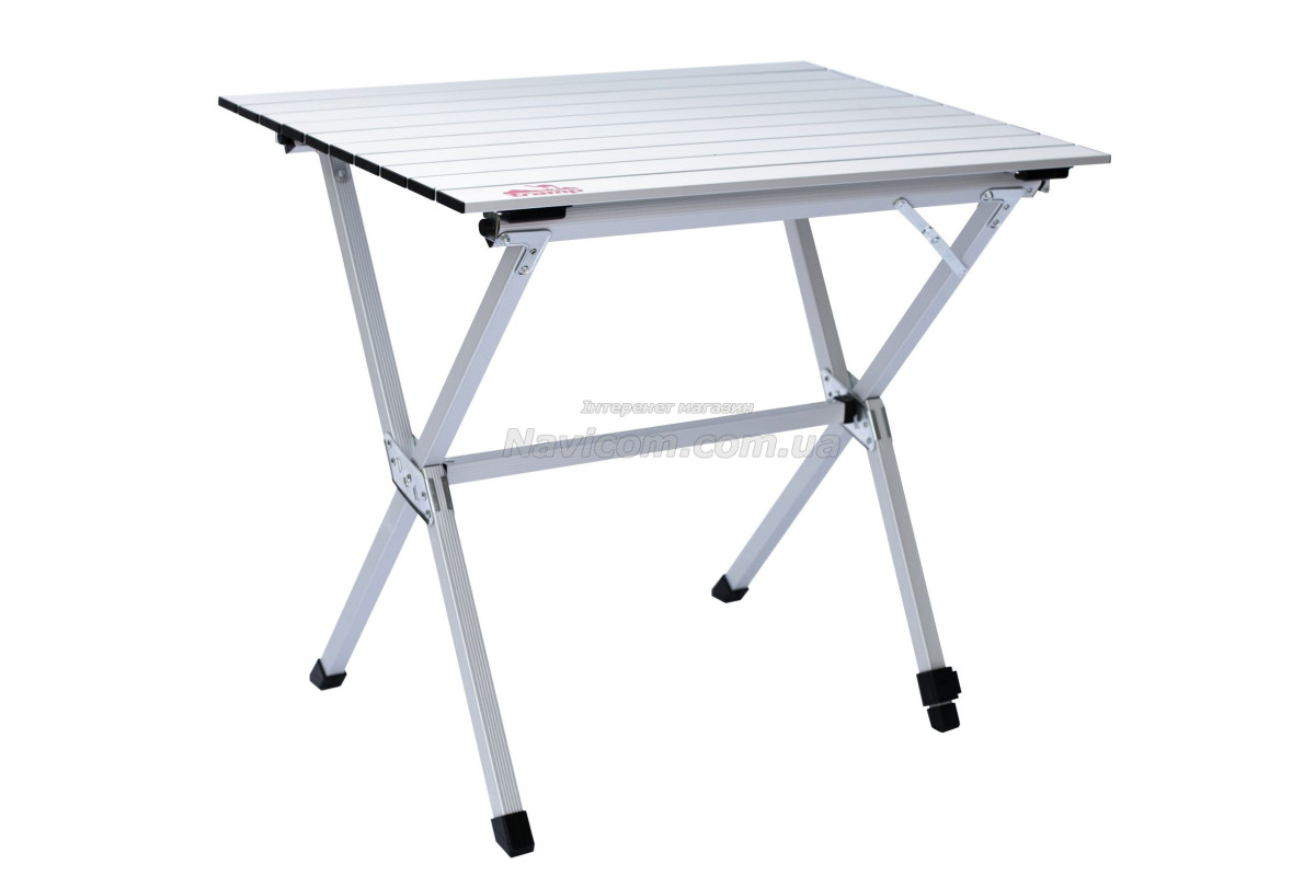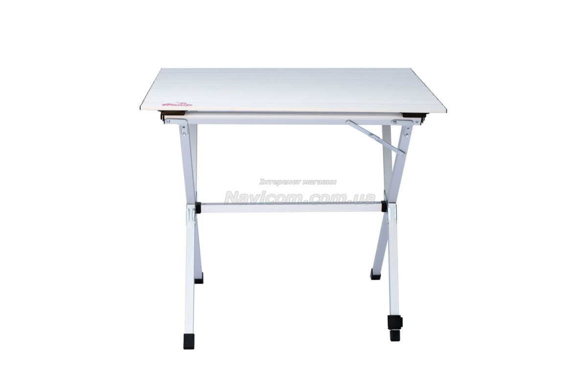 Складывающаяся «гармошкой» столешница и складной каркас столика выполнены из легкого и прочного алюминия .