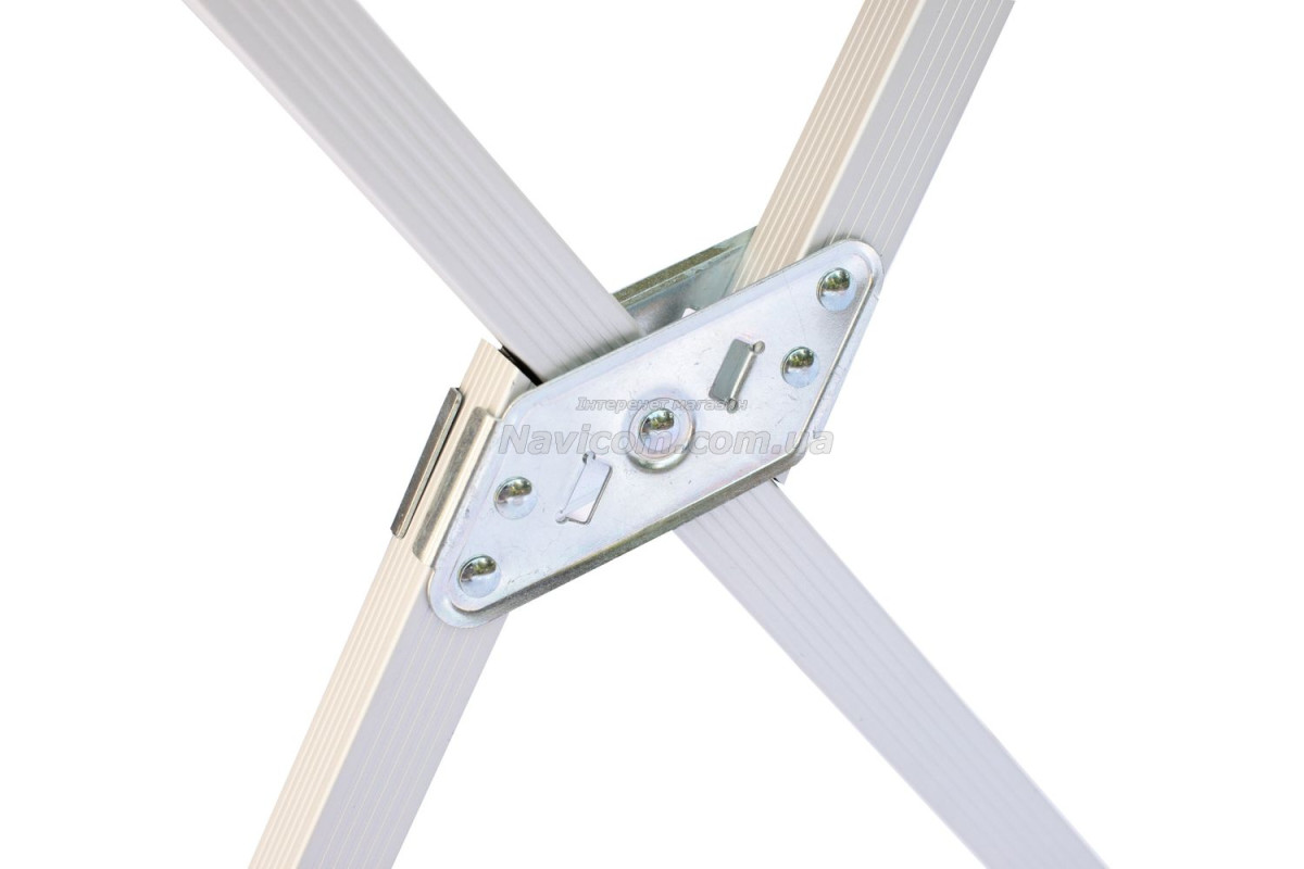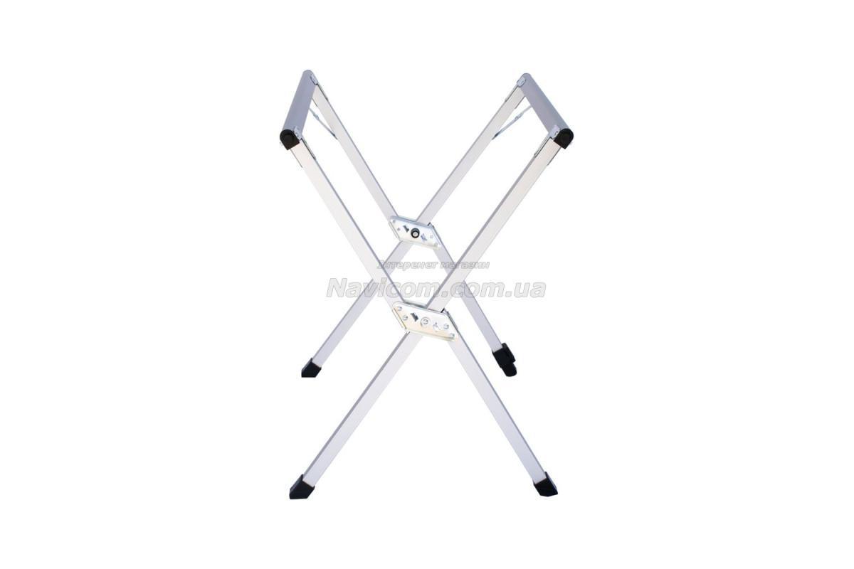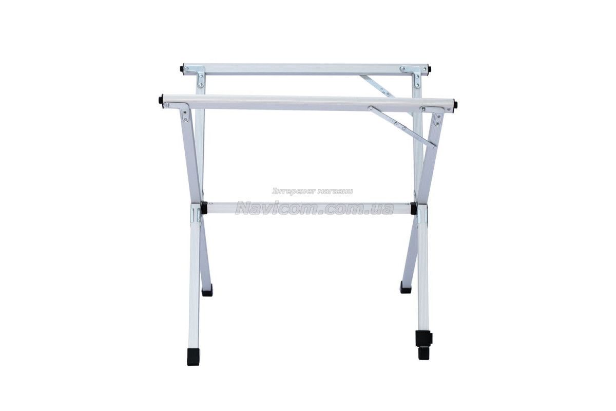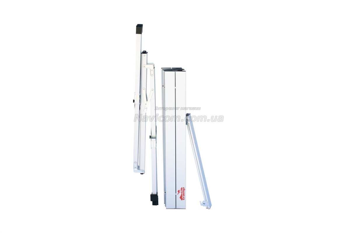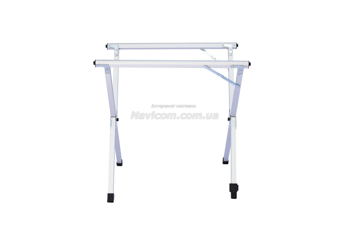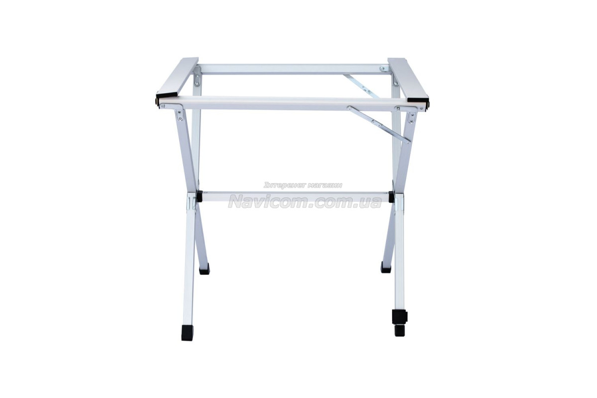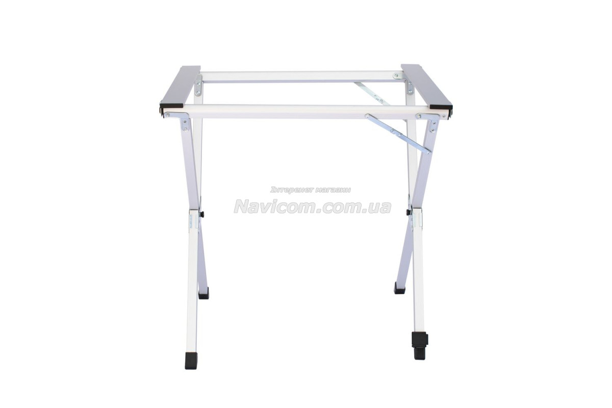 Складывающаяся «гармошкой» столешница и складной каркас столика выполнены из легкого и прочного алюминия .