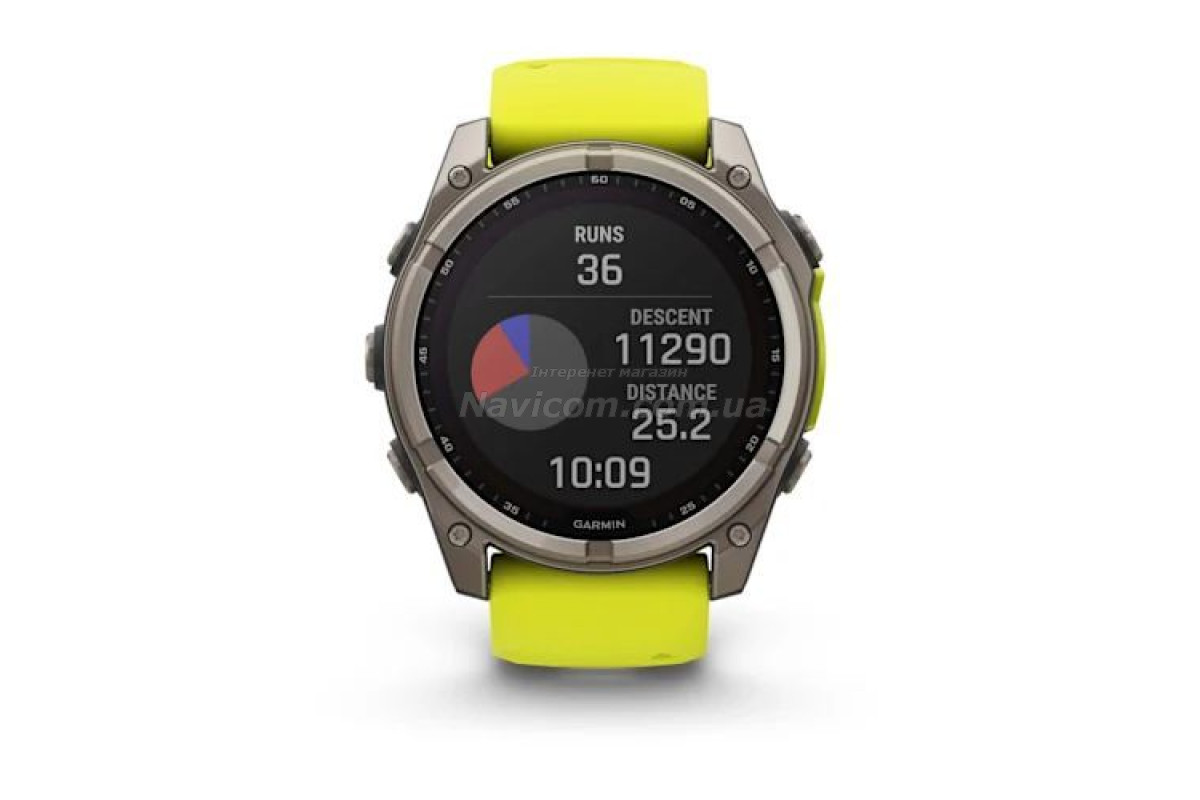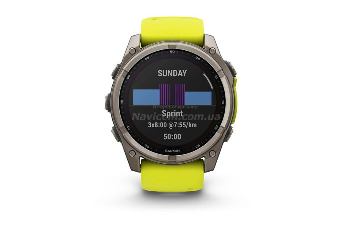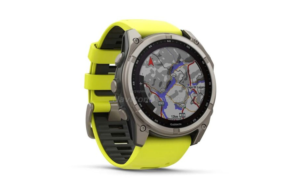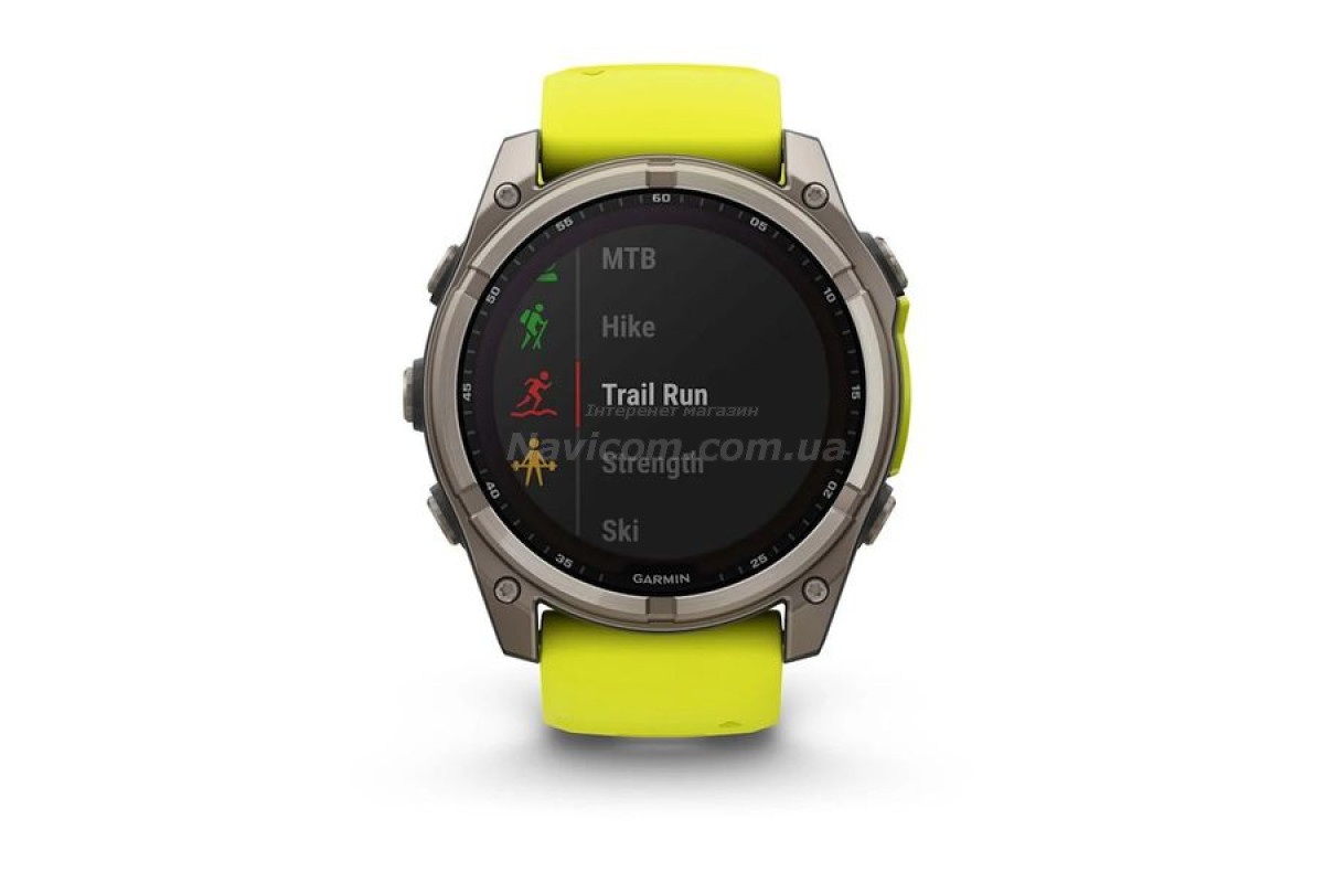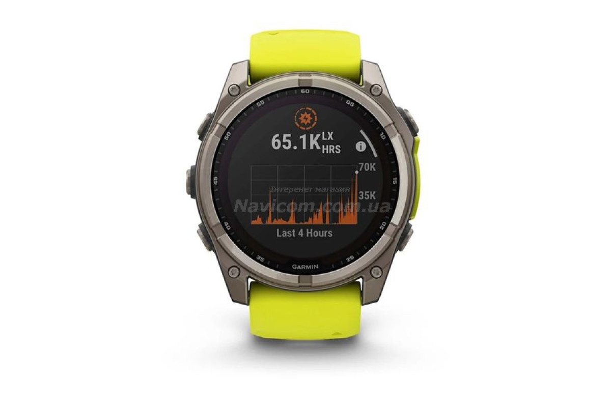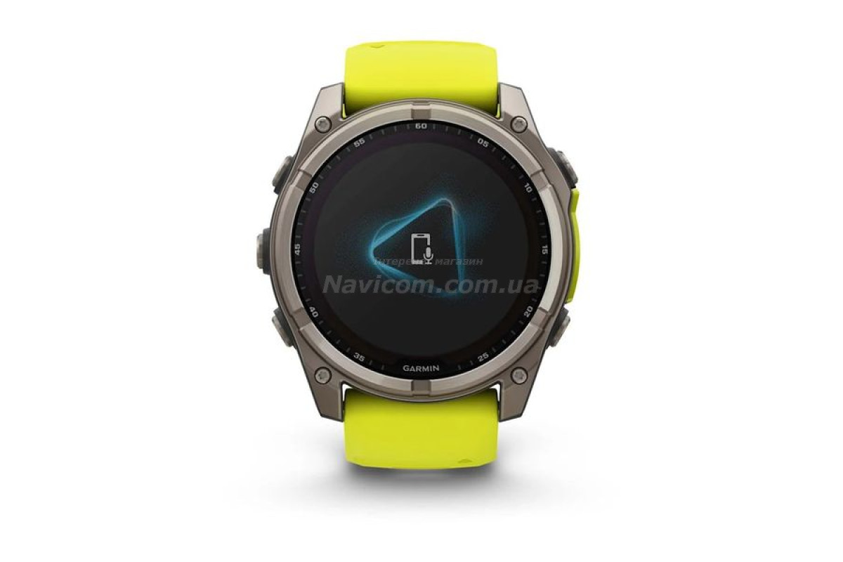 Смарт-часы Garmin fenix 8 (51 мм) Sapphire Solar титан ярко-желтый/графитовый для серьезных спортсменов и искателей приключений, которые стремятся выйти за пределы своих возможностей; эти спортивные GPS-часы премиум-класса созданы для больших запястий и содержат расширенные функции для силовых тренировок, возможность погружений под воду, встроенный динамик и микрофон для голосовых функций, встроенный светодиодный фонарик и до 48 дней работы благодаря стеклу Power Sapphire, обеспечивающему зарядку от солнечной энергии.