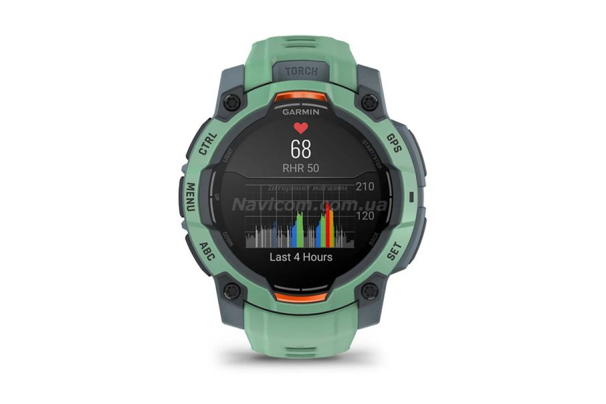 Уверенно исследуйте мир, не переживая за сохранность часов. Имея прочную конструкцию, включающую усиленную металлом рамку и устойчивый к царапинам дисплей, Instinct 3 готов к любому экстриму.