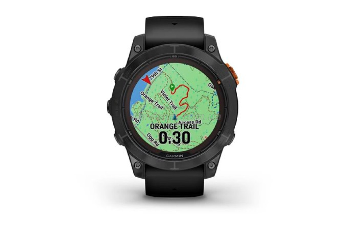Додаткова підписка на карти Outdoor Maps+ пропонує доступ до преміальних карт (тільки покриття США) та супутникових знімків (всесвітнє покриття), які завантажуються безпосередньо на ваш годинник.