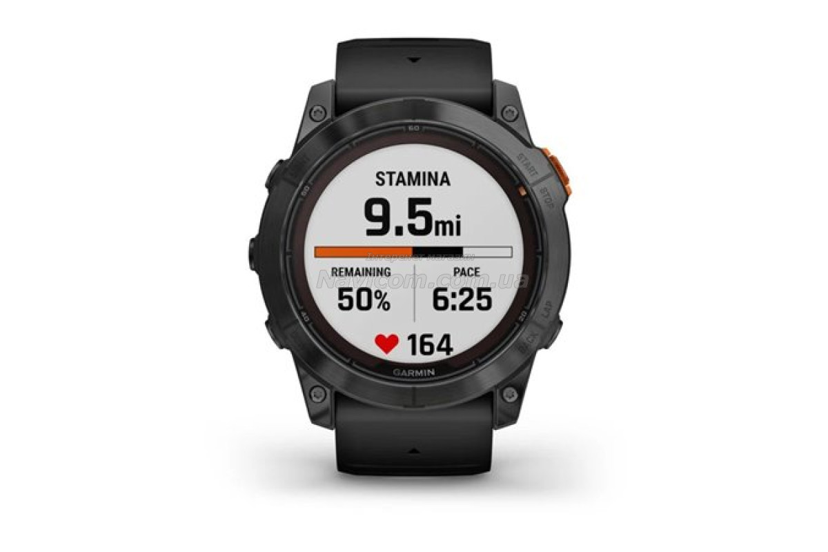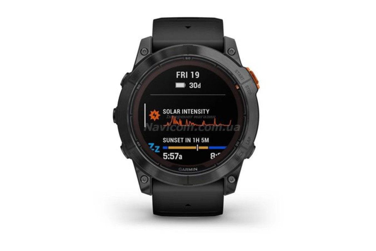 З лінзою, що заряджається від сонячної батареї, ваш пристрій працюватиме до 37 днів у режимі розумного годинника за умови використання протягом 3 годин на день під прямим сонцем (50 000 люкс). У режимі GPS з підзарядкою від сонця пристрій тримає заряд до 122 годин (за умови безперервного використання впродовж усього періоду в умовах освітлення 50 000 люкс).