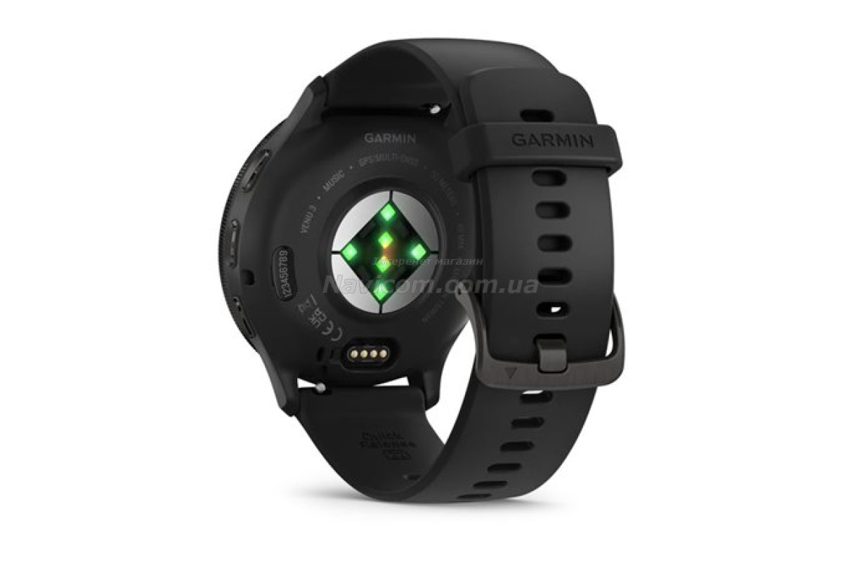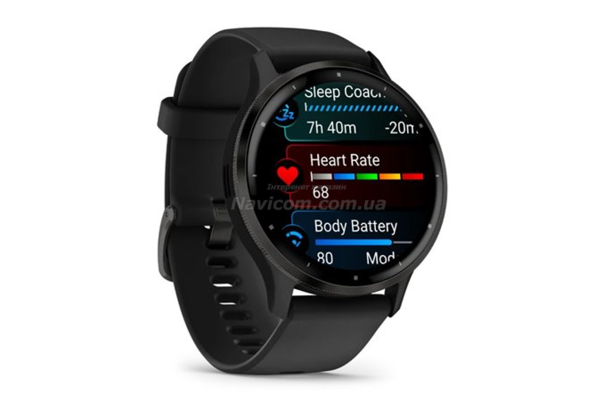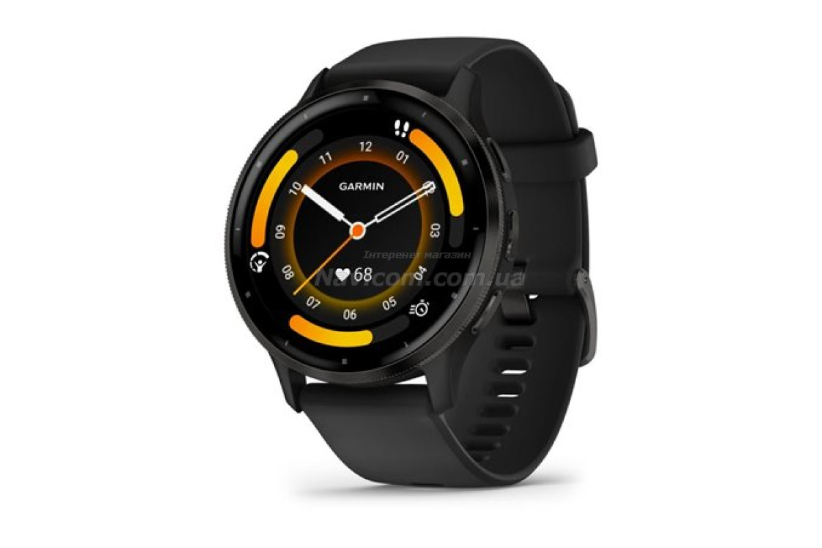 Смарт-годинник Garmin Venu 3 чорний зі сланцевим сталевим безелем і силіконовим ремінцем