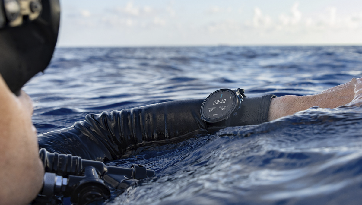Цей годинник з яскравим кольоровим дисплеєм AMOLED діагоналлю 1,4 дюйми, сапфіровою лінзою, корпусом, що витримує статичний тиск до 20 АТМ, і герметичними металевими індуктивними кнопками створено для глибоководних занурень (до 200 м).