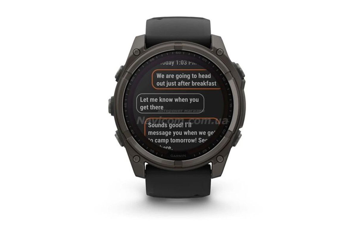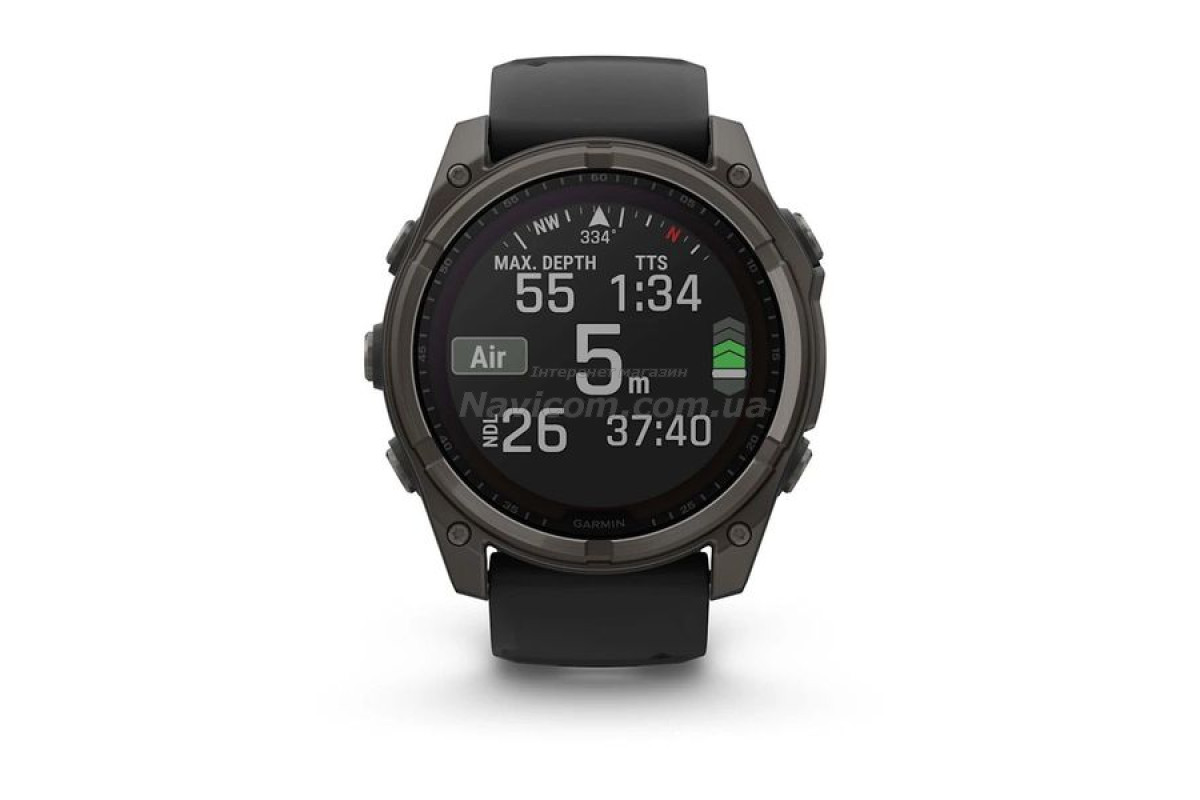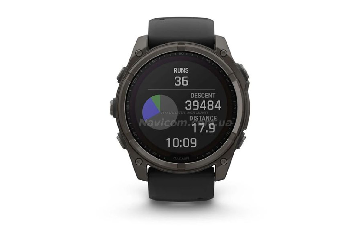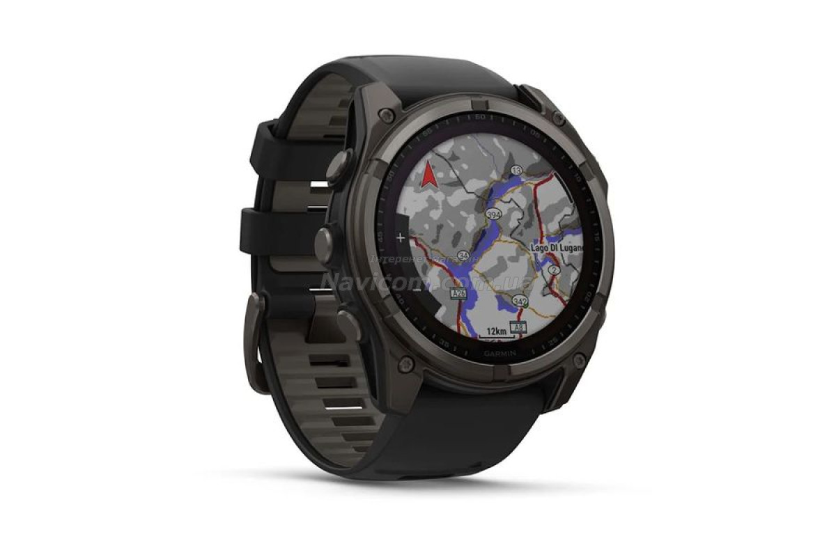 Смарт-годинник Garmin fenix 8 (51 мм) Sapphire Solar карбоново-сірий DLC титан чорний для серйозних спортсменів і шукачів пригод, які прагнуть вийти за межі своїх можливостей; цей спортивний GPS-годинник преміум-класу створений для великих зап'ясть та містить розширені функції для силових тренувань, можливість занурень під воду, вбудований динамік і мікрофон для голосових функцій, вбудований світлодіодний ліхтарик і до 48 днів роботи завдяки склу Power Sapphire, що забезпечує заряджання від сонячної енергії.