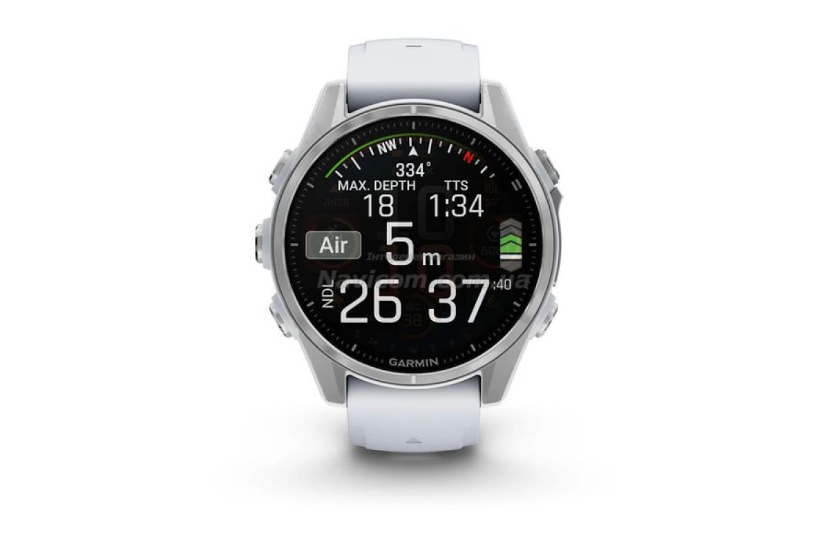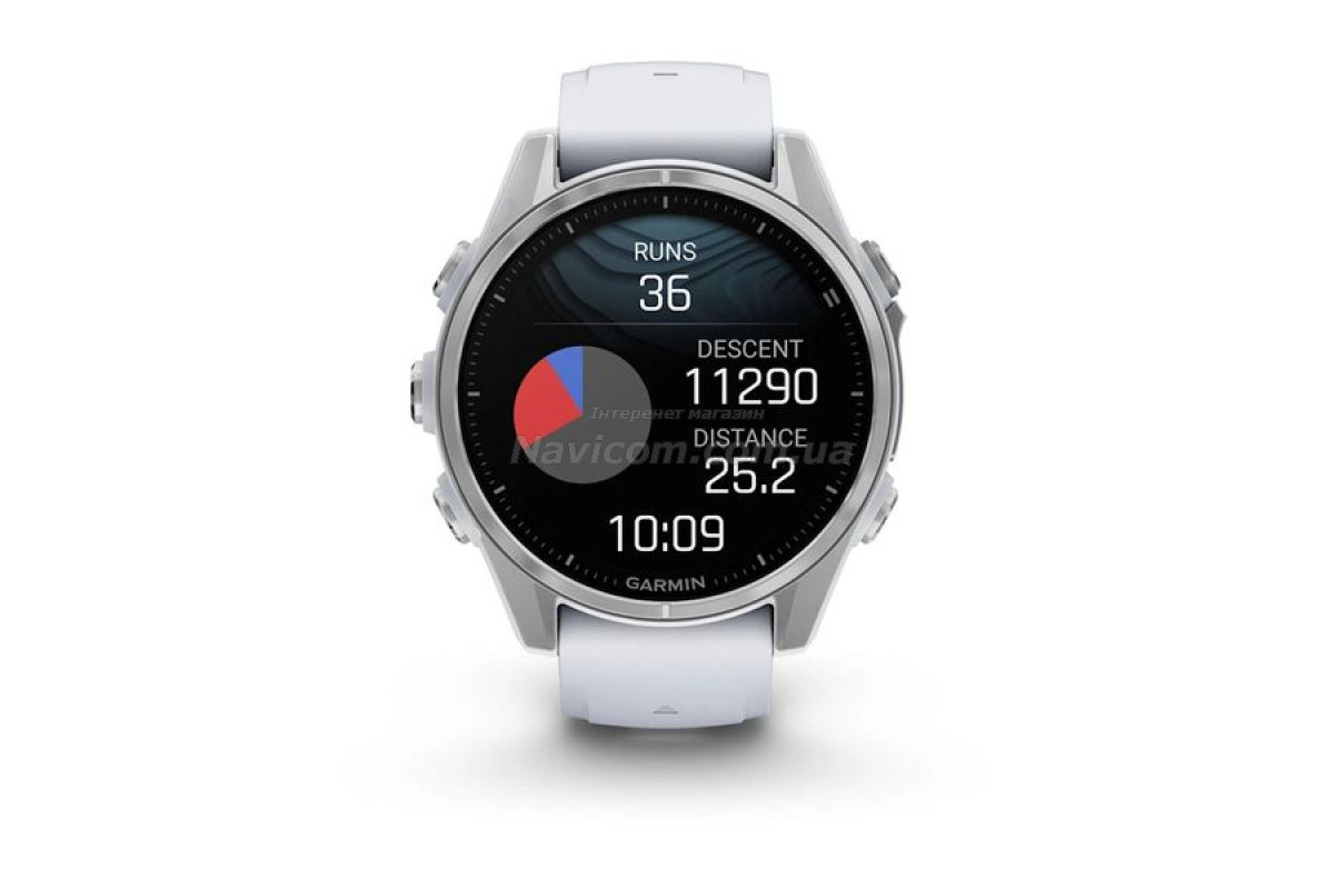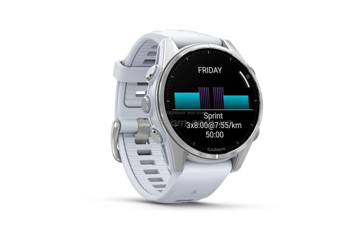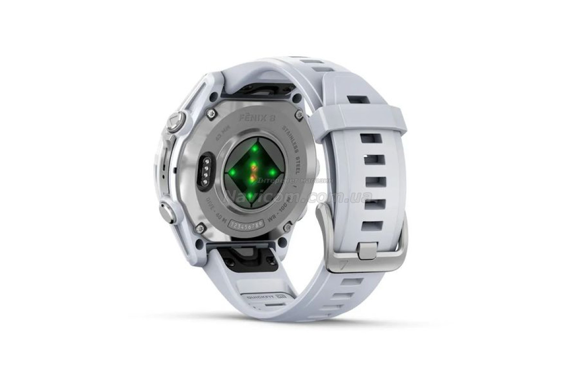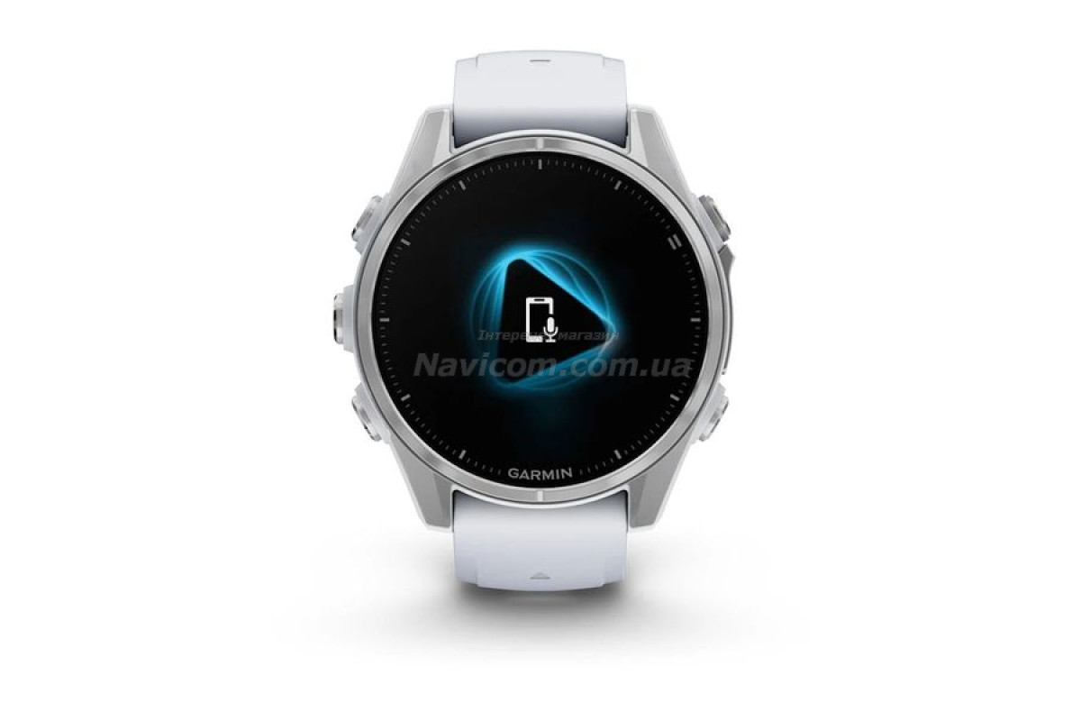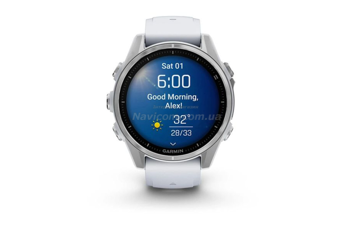 Смарт-годинник Garmin fenix 8 AMOLED (43 мм) сріблястий для серйозних спортсменів і шукачів пригод, які хочуть вийти за межі своїх можливостей; цей спортивний GPS-годинник преміум-класу створений для ефективності - з розширеними функціями для силових тренувань, можливістю підводного плавання, вбудованим динаміком і мікрофоном для голосових функцій, вбудованим світлодіодним ліхтариком і компактною конструкцією для невеликого зап'ястя.