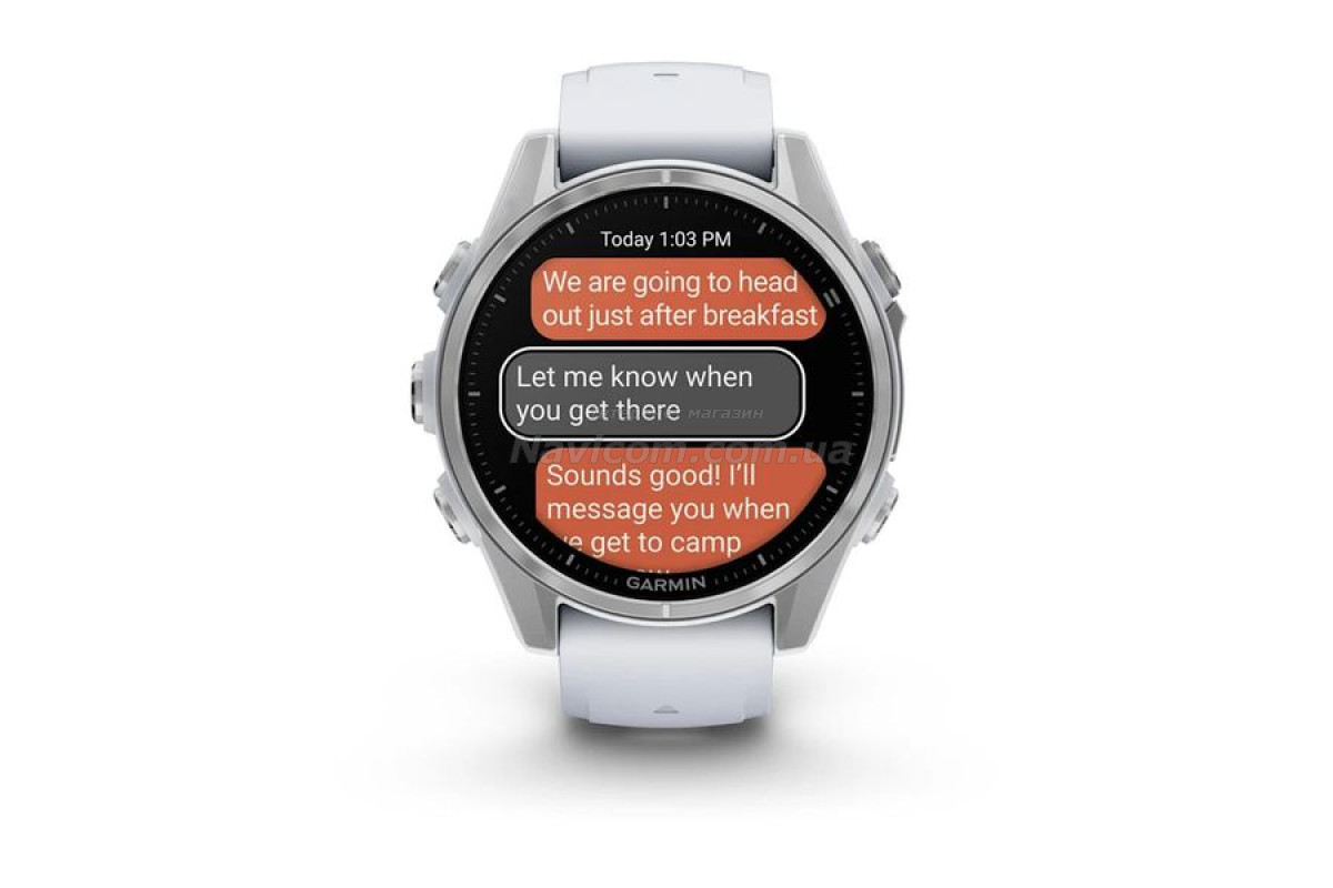 Здійснюйте та приймайте телефонні дзвінки зі спортивного годинника, коли він підключений до вашого смартфона. Крім того, керуйте функціями годинника за допомогою голосових команд поза мережею або використовуйте голосовий помічник смартфона, щоб відповідати на текстові повідомлення та інше.