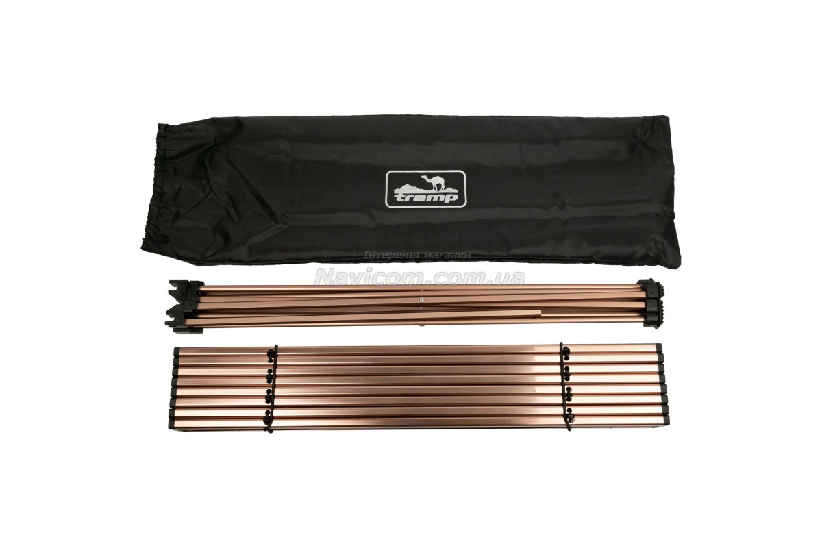 Легкий і компактний кемпінговий стіл, який стане незамінним супутником для будь-якого виду відпочинку на природі. Виготовлений з алюмінію марки Alu 6061, цей столик важить лише 1,3 кг, що дозволяє легко транспортувати його в багажнику автомобіля або навіть у похідному рюкзаку. Стіл Tramp COMPACT швидко і просто збирається, забезпечуючи стабільність і міцність під час використання. Завдяки складаній конструкції, він займає мінімум місця в складеному стані, що робить його ідеальним вибором для кемпінгу, пікніків, риболовлі та туристичних походів.