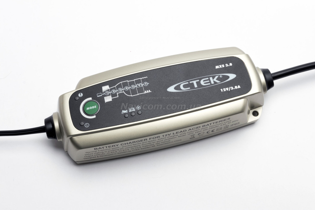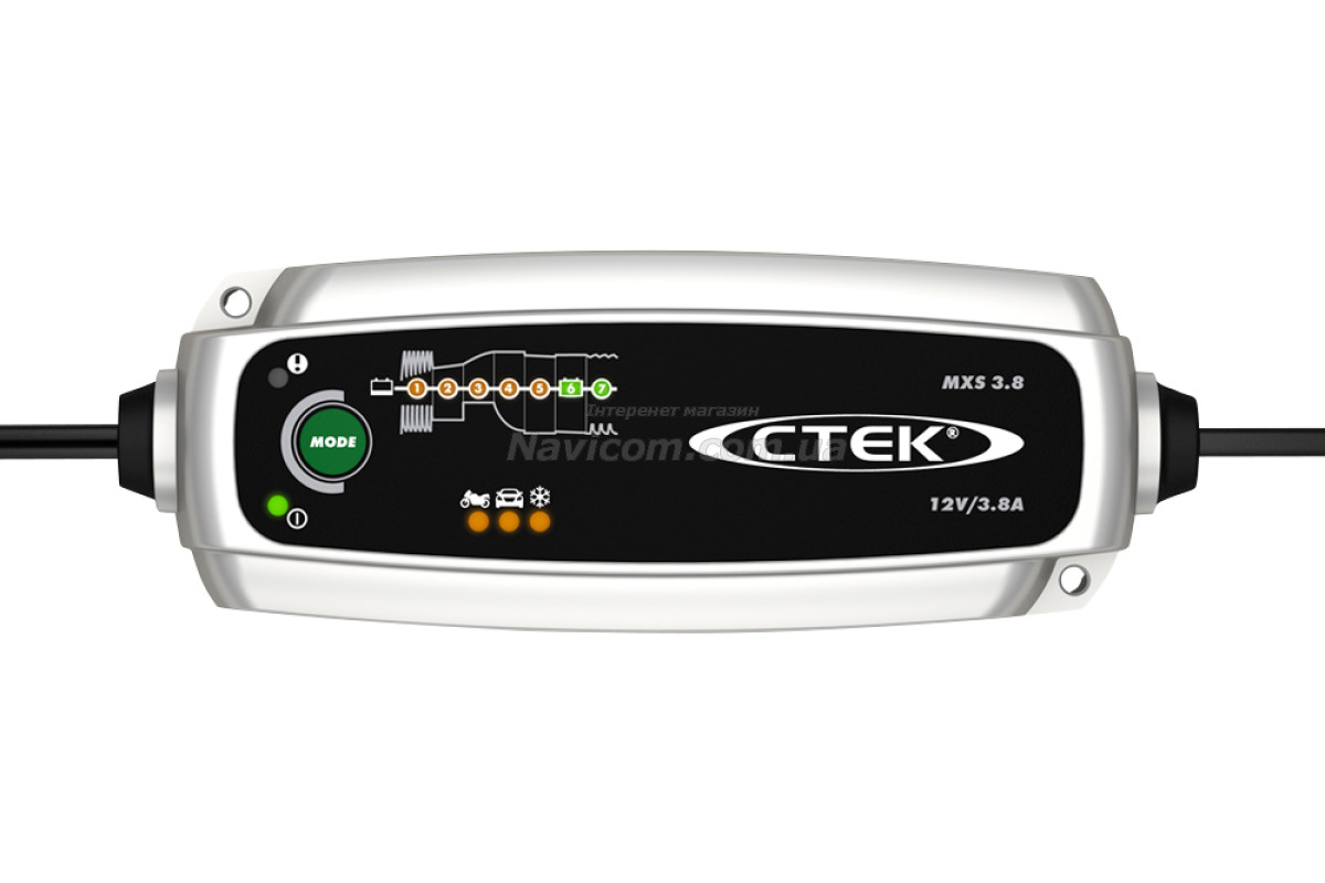 CTEK MXS 3.8 Модель зарядного пристрою для акумулятора MXS 3.8 сприяє вирішенню питань, пов'язаних з обслуговуванням та зарядним процесом акумуляторів. Є унікальним за пристроєм, зарядка здійснюється в 7 етапів. Має запатентовані режими та можливість управління процесором. Якісно заряджає акумулятор.