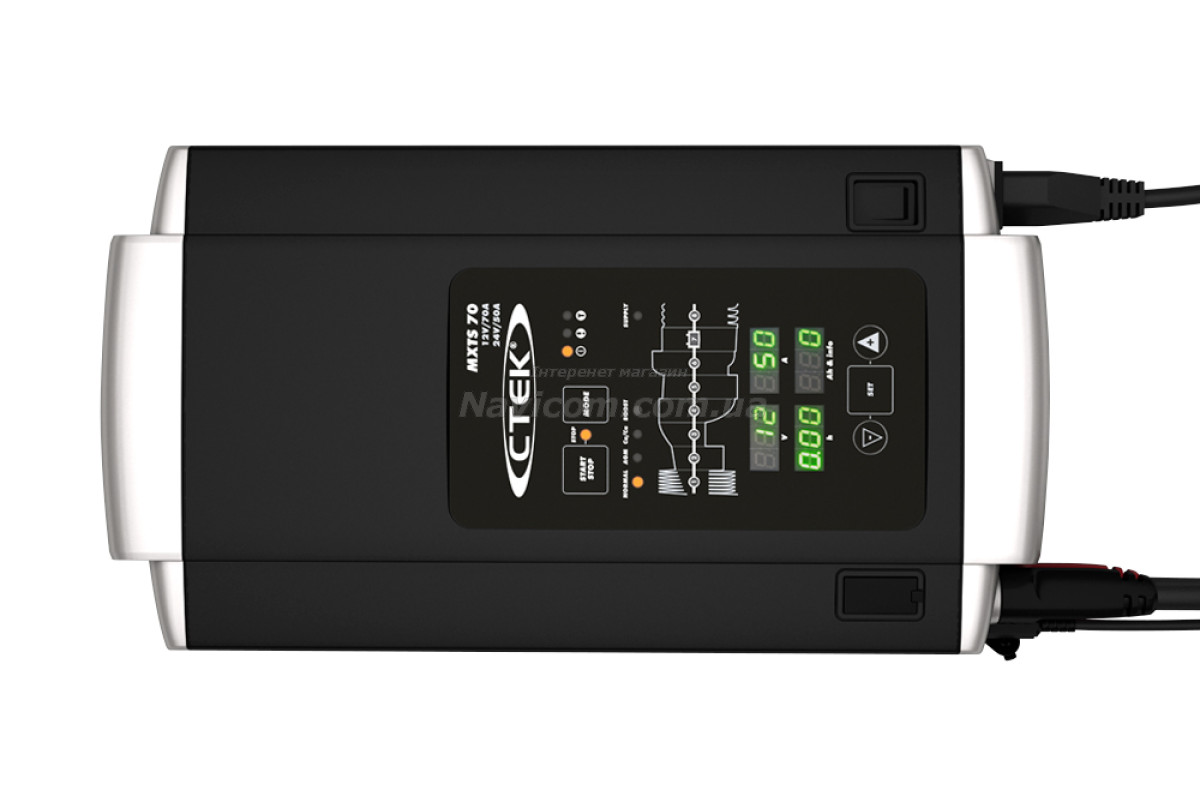 CTEK MXTS 70/50 - потужний професійний зарядний пристрій для обслуговування 12В та 24В акумуляторних батарей в умовах автосервісних майстерень.