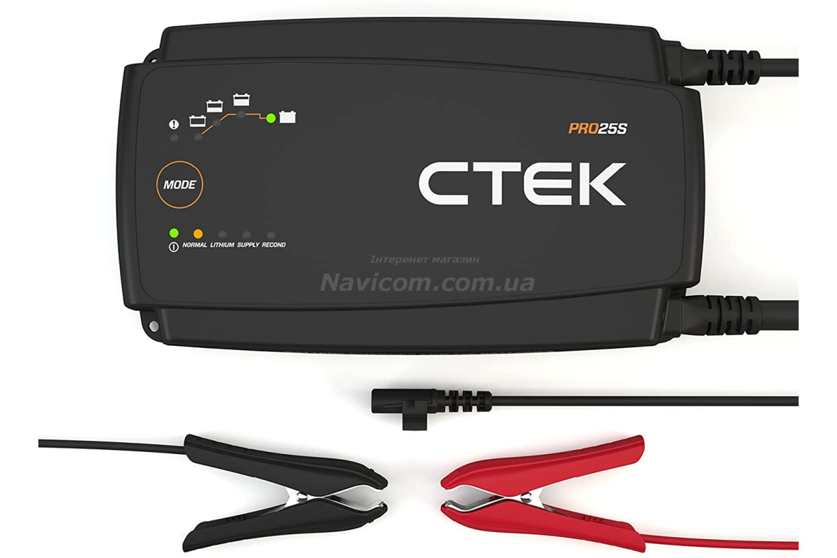 CTEK PRO25S - це представник нового покоління сучасних зарядних пристроїв і засобів підтримки стану акумуляторної батареї, оновлення моделі MXS 25, розроблене спеціально для потреб автомайстерень, в яких здійснюється ремонт автомобілів, що оснащуються 12-вольтовими акумуляторами.